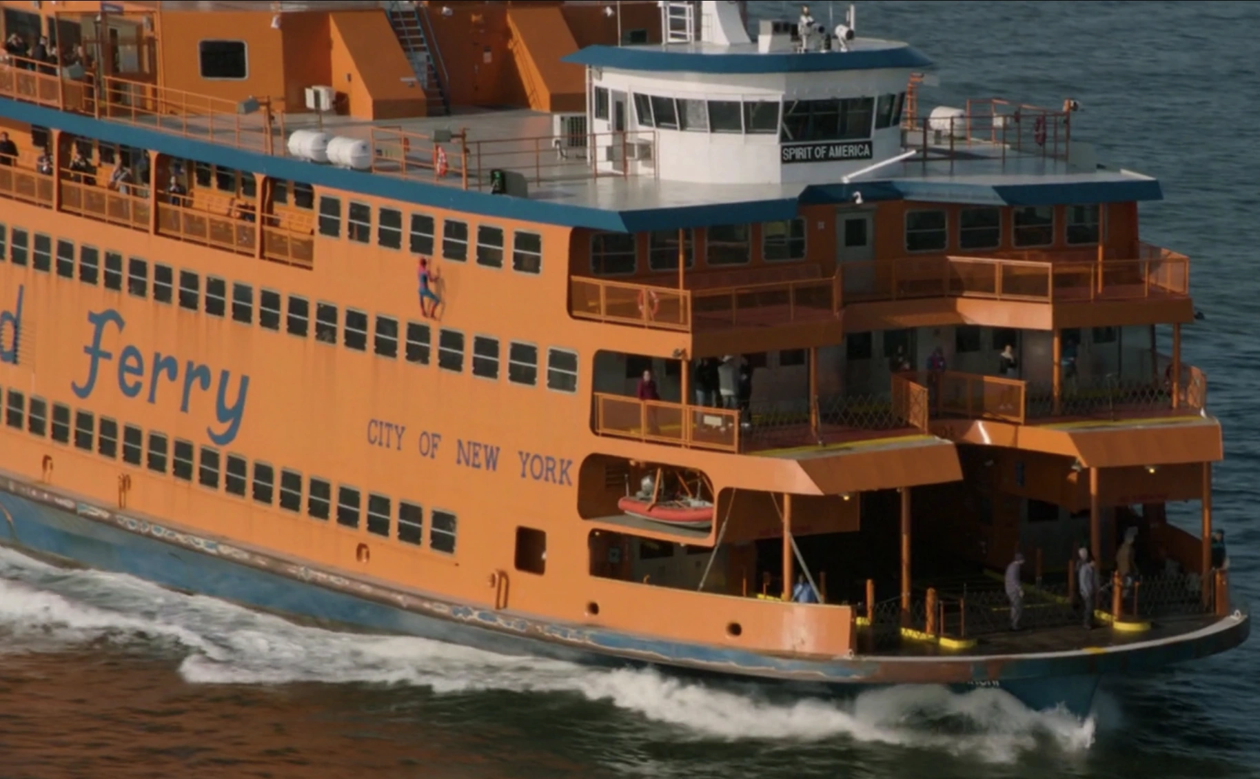 Spirit of America is a Staten Island Ferry that is able to transport both people and vehicles across the waters of New York City. The ship was not strong enough to withstand a blast from Chitauri technology, splitting in half when Vulture's weapon malfunctioned. The ship was strong enough to still float after being fused back together by Iron Man.[1]