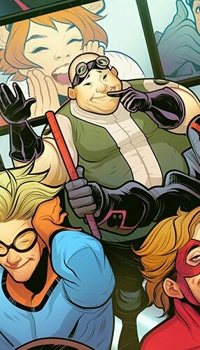 He joined the team New Warriors and started living and working together with his teammates: Squirrel Girl, Mister Immortal, Night Thrasher, Speedball and Debrii.[2] The team "took him under their wing" and helped him find and grow his own confidence.[1] They eventually came into conflict with municipal authorities and Ernest Vigman.[2]
