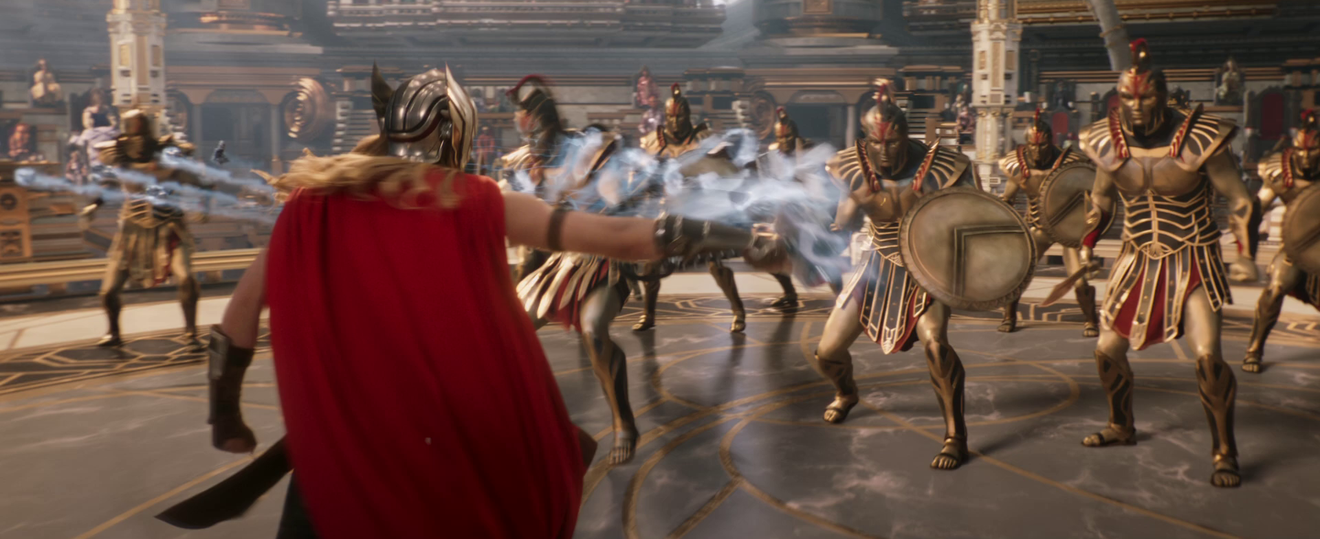 "Look, these gods aren't gonna help, but that Thunderbolt, I think that might be of use. Jane, you go right. Thor, you go left. We bum rush him, take the bolt. Ding dong." "Alright, let's go get it."