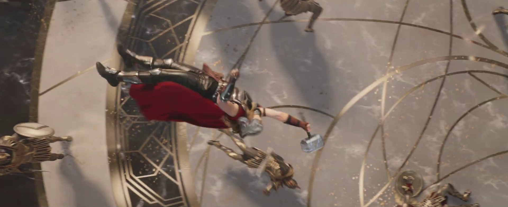 While traveling to the Shadow Realm, Mighty Thor enquired if they still had a plan, as they failed to assemble an army of gods, but Valkyrie stated that there was no longer a plan. Thor attempted to motivate them, saying that the Thunderbolt was all they needed.