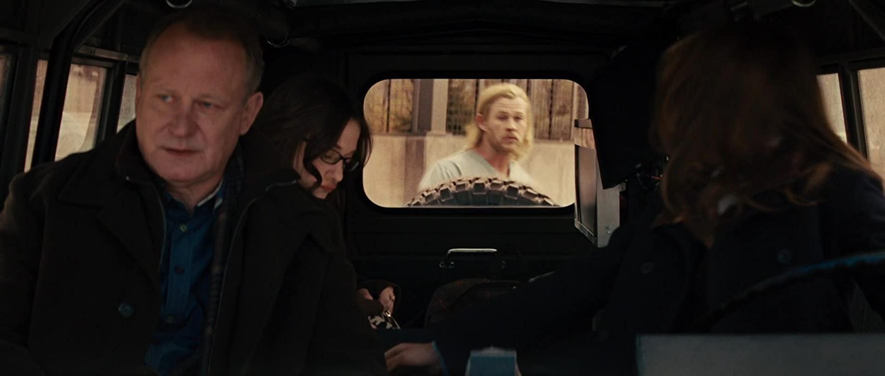 Foster drove up to him and offered him a lift, deciding to help him, as she wanted to get her research back. The two then drove down to the crater site, determined to retrieve their possessions, which Foster was nervous about doing. During the drive, Foster bonded with Thor, while still not being sure of who he was.