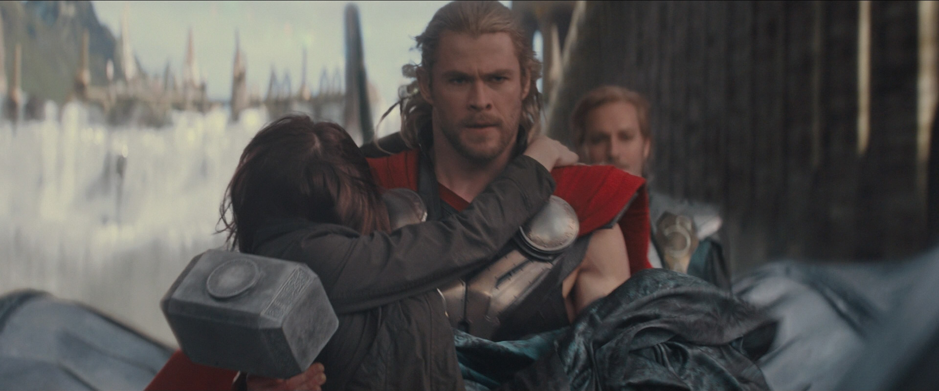 Thor then invited Foster to accompany him to see the Bifrost Bridge, which she accepted, so he held her tight and flew them out to the desert. When they arrived at the Bifrost site, Thor discovered Heimdall not responding. After some delay, the Bifrost then opened and Thor told Foster that he needed to return to Asgard to stop Loki, but he would return for her after. Foster then passionately kissed Thor goodbye, accepting his promise.