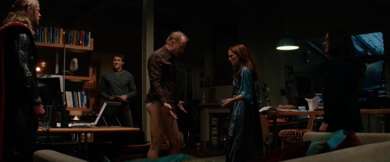 Bringing Thor to the base, they provided him with Donald Blake's clothes, and Foster started to become distracted by Thor as she watched him change. When Thor mentioned that he required food, they took him to Isabela's Diner, where Foster questioned him on how he was inside the vortex. However, Thor didn't take notice of their questions and smashed a mug in request of another drink, causing Foster to tell him not to do that anymore.