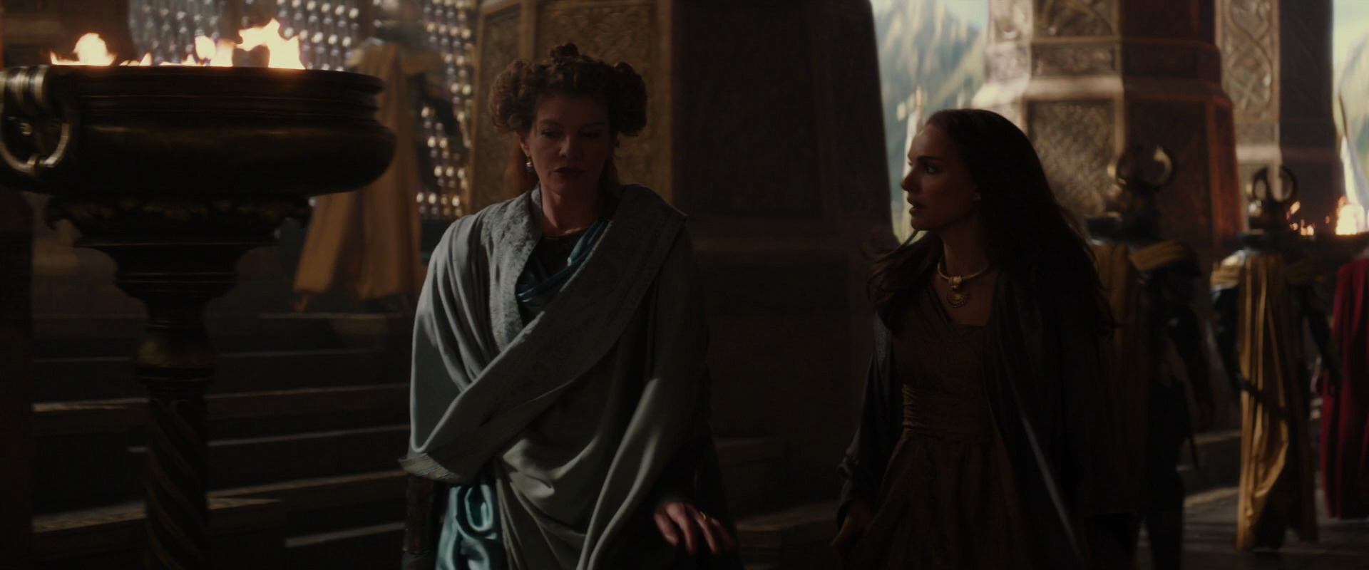 Scared on what would happen to her, Thor promised Foster he would find a way to save her. The two were then joined by Frigga, who Thor informed Foster was his mother, which made her nervous as she greeted the Queen. Soon after, they noticed a commotion from the Asgardian Dungeons, so Frigga told Thor to investigate it, promising to look after Foster.