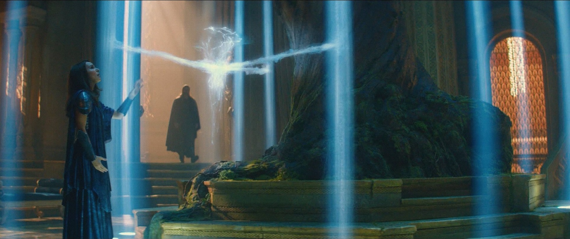 Royal Palace of Valaskjalf: When Thor discovered something to be wrong with Foster, he brought her to Asgard to help her. After learning the that the Aether was inside her, Foster was allowed to stay on Asgard for safety, given her own chambers, which she was imprisoned in temporarily after the Sacking of Asgard.