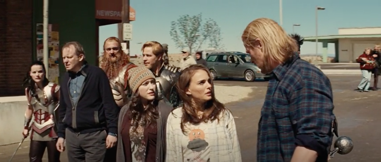 When twomen entered the diner talking about a "satellite" that landed in the desert, Foster listened in on the conversation, and asked them about it. When they revealed that the "satellite" could not be moved, Thor asked for directions and then headed off, causing Foster to run after him. Foster asked what he was doing, and Thor informed them that the "satellite" belonged to him and he was going to take it.