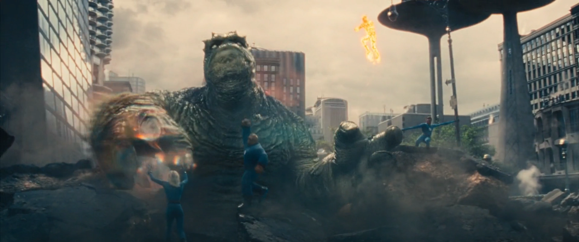 The four landed in New York City and were immediately surrounded by paparazzi, which made Richards uncomfortable. However, he put his personal discomfort aside so they could defend the city. They all looked into a large hole in the ground, when suddenly Giganto appeared out of it and began attacking. Ben Grimm charged the monster, but Richards shouted at him for stop since they did not have a plan. However, Grimm simply said they needed to clobber Giganto. Johnny Storm was worried about causing panic with their powers, but Richards said that they were all feeling that way and encouraged Storm to help. Richards wrapped himself around Giganto as they all fought, and Sue Storm eventually used a forcefield to suffocate Giganto.