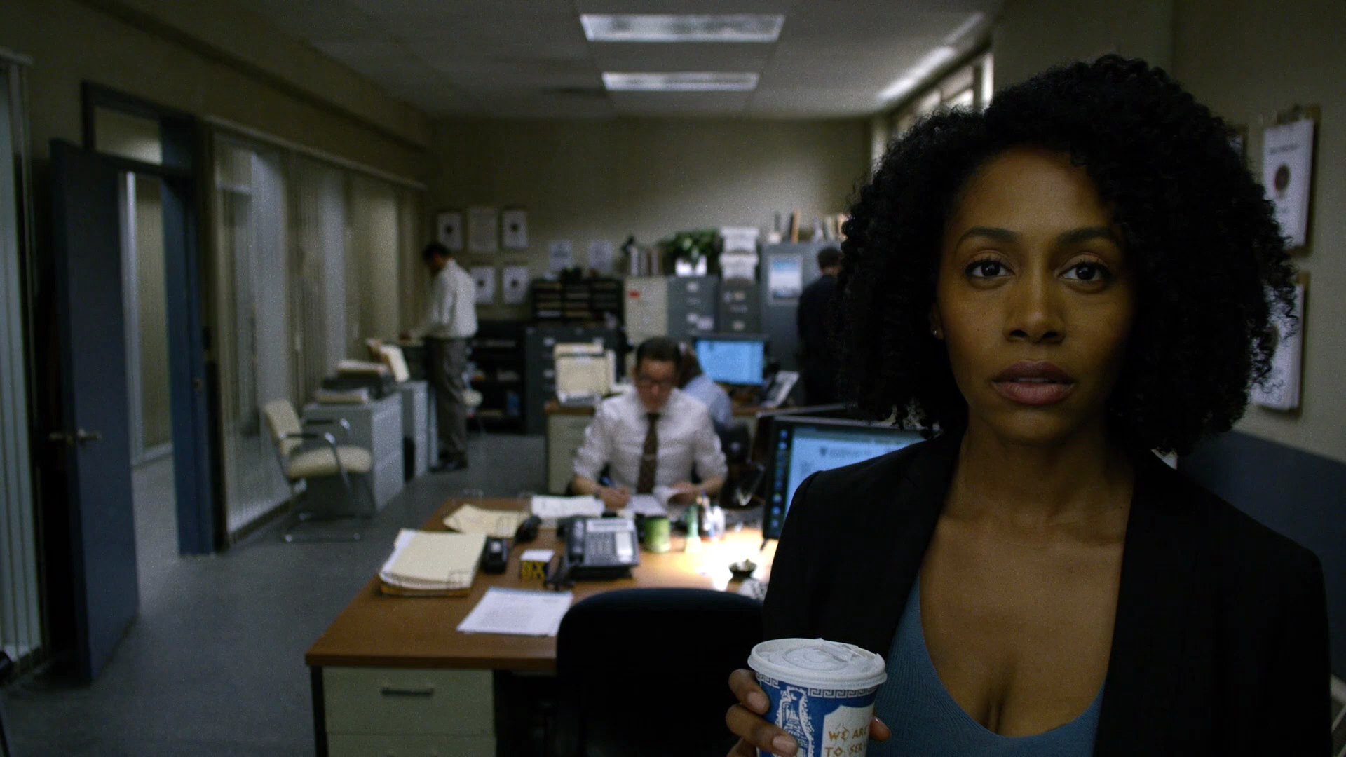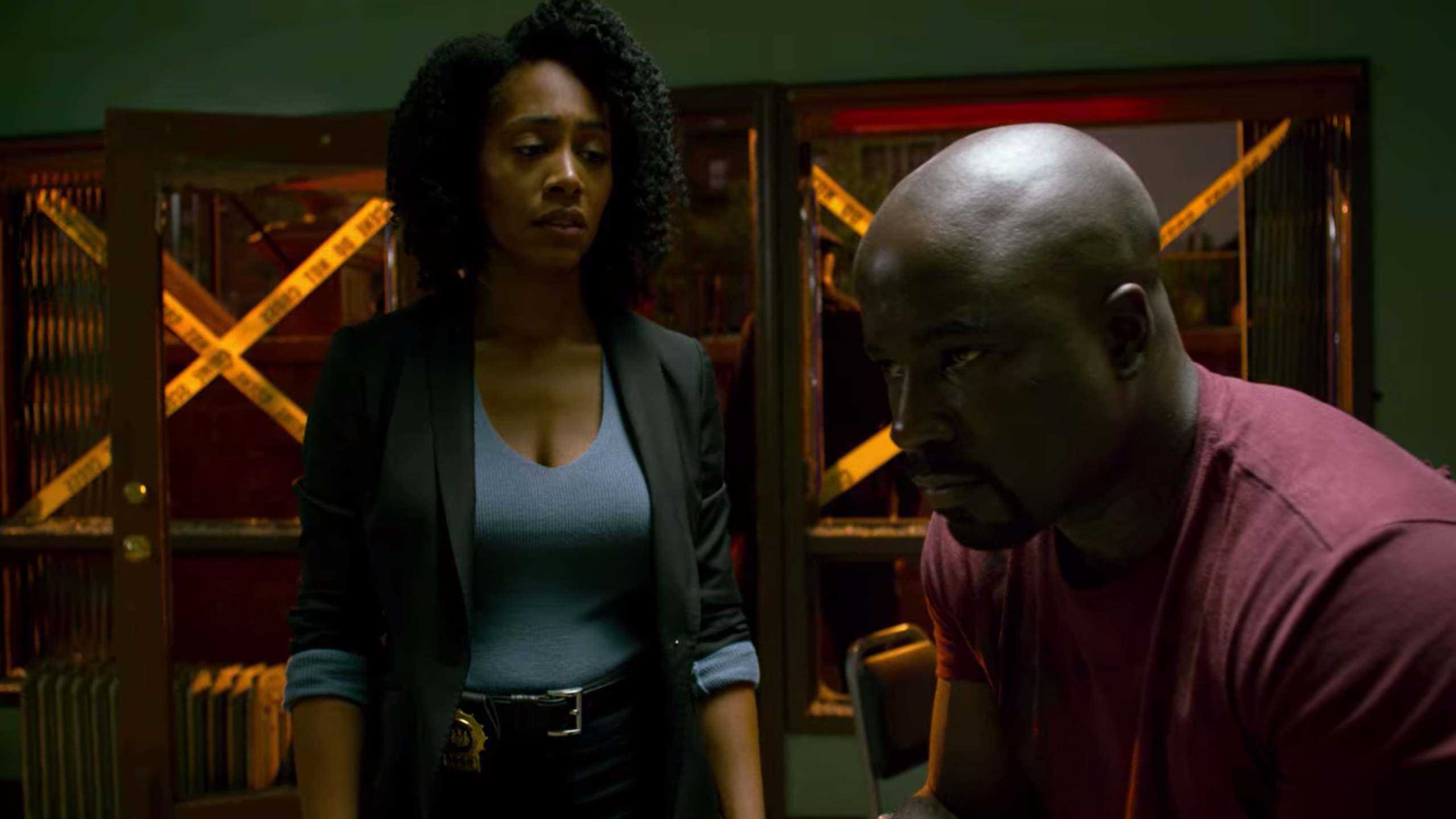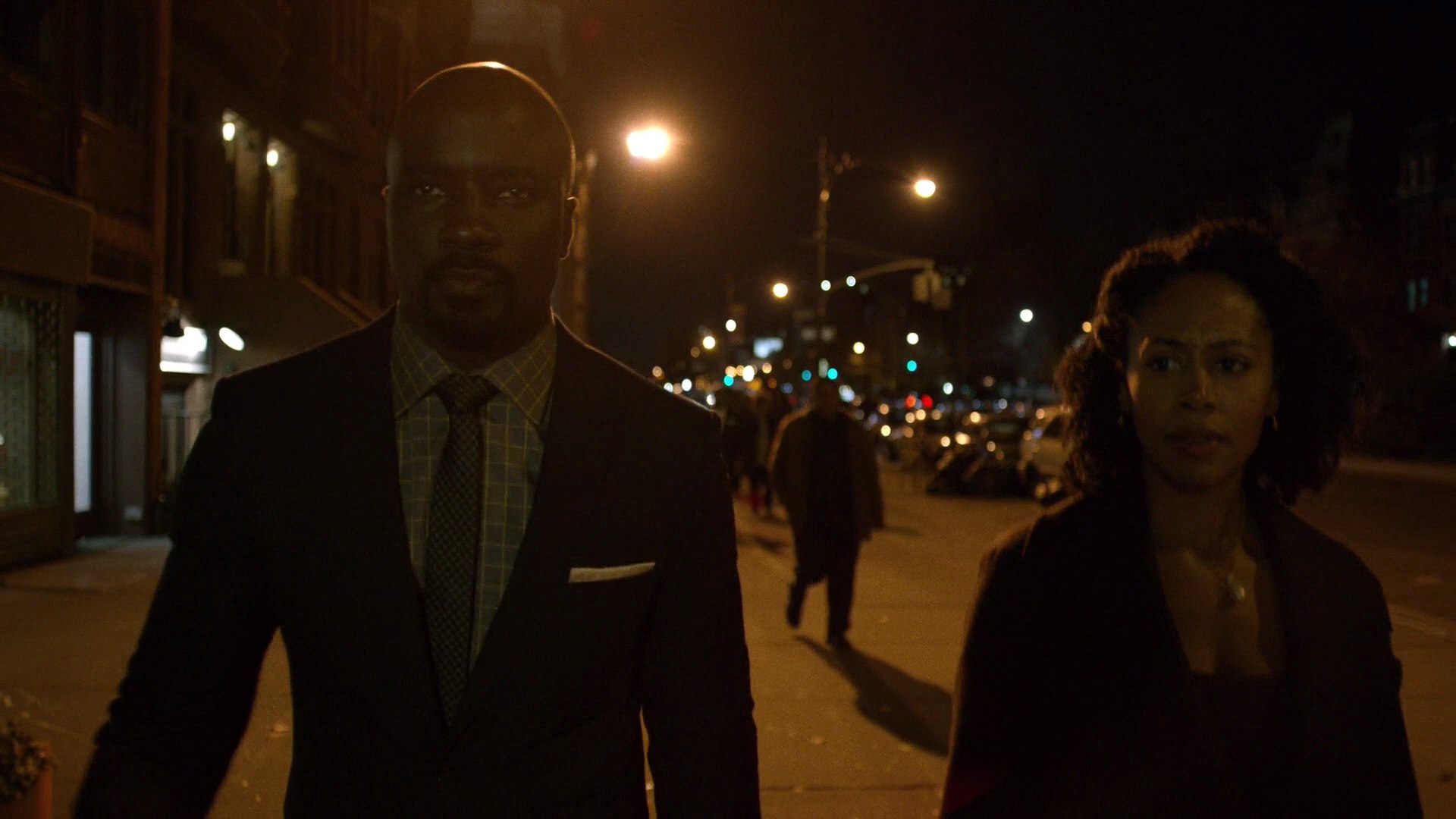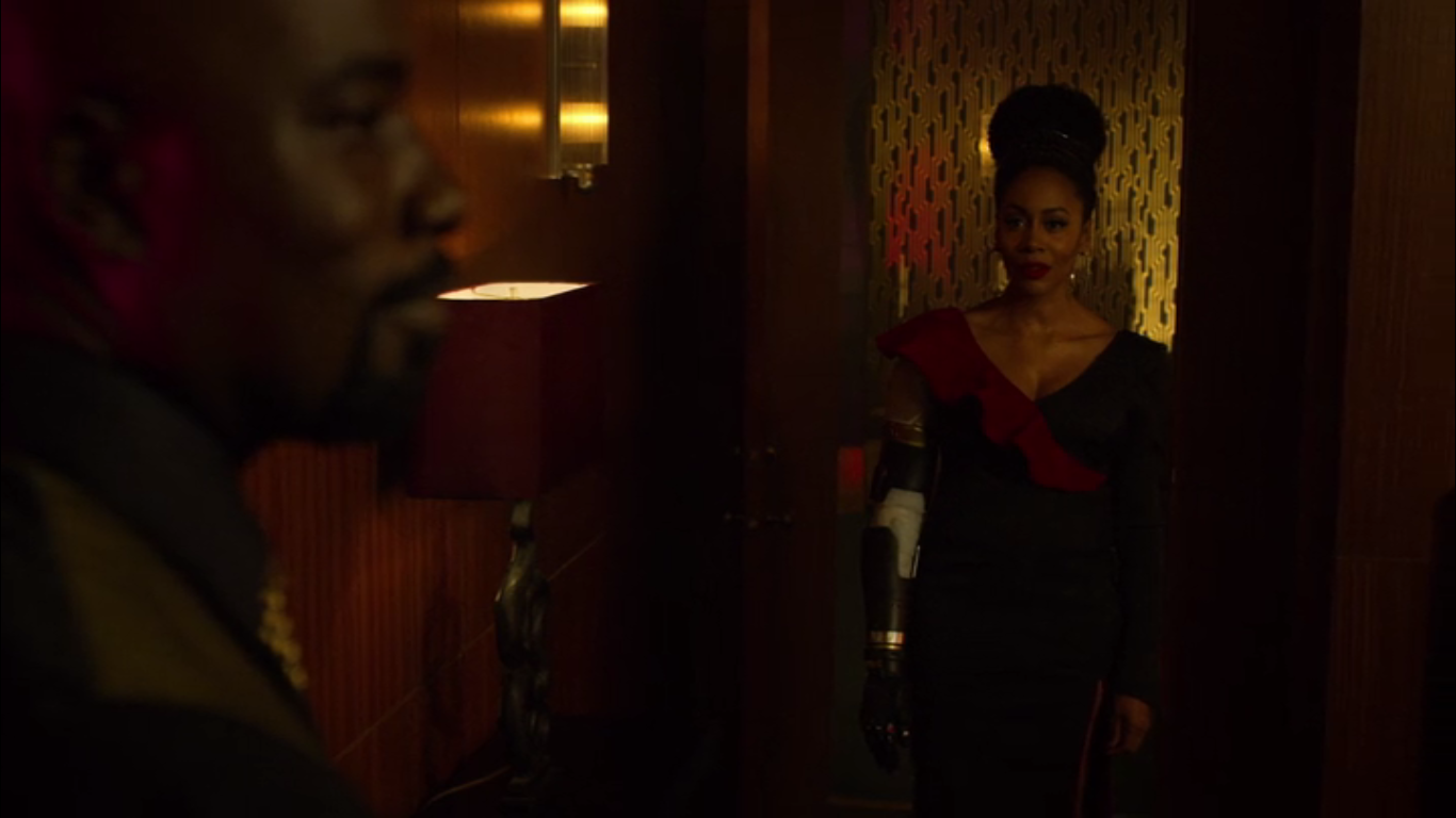 "You really think Chico killed his friend over money?" "You are?" "Luke Cage." "Detective Misty Knight." "Detective, looks like you found some better clothes to audit in."