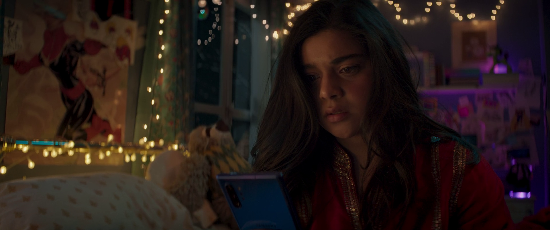 The next morning, Khan put on her Captain Marvel cosplay costume and looked at herself in the mirror. Above the mirror, she had a picture of Captain Marvel and she mimicked the pose of Captain Marvel in that picture. However, she became dismayed upon noticing that the top did not completely cover her pelvic area. Khan attempted to remedy this by tying a sash around her hips but was interrupted by her mother knocking on her door. Knowing that her mother would disapprove of her wearing her costume, she quickly put a robe on over it.