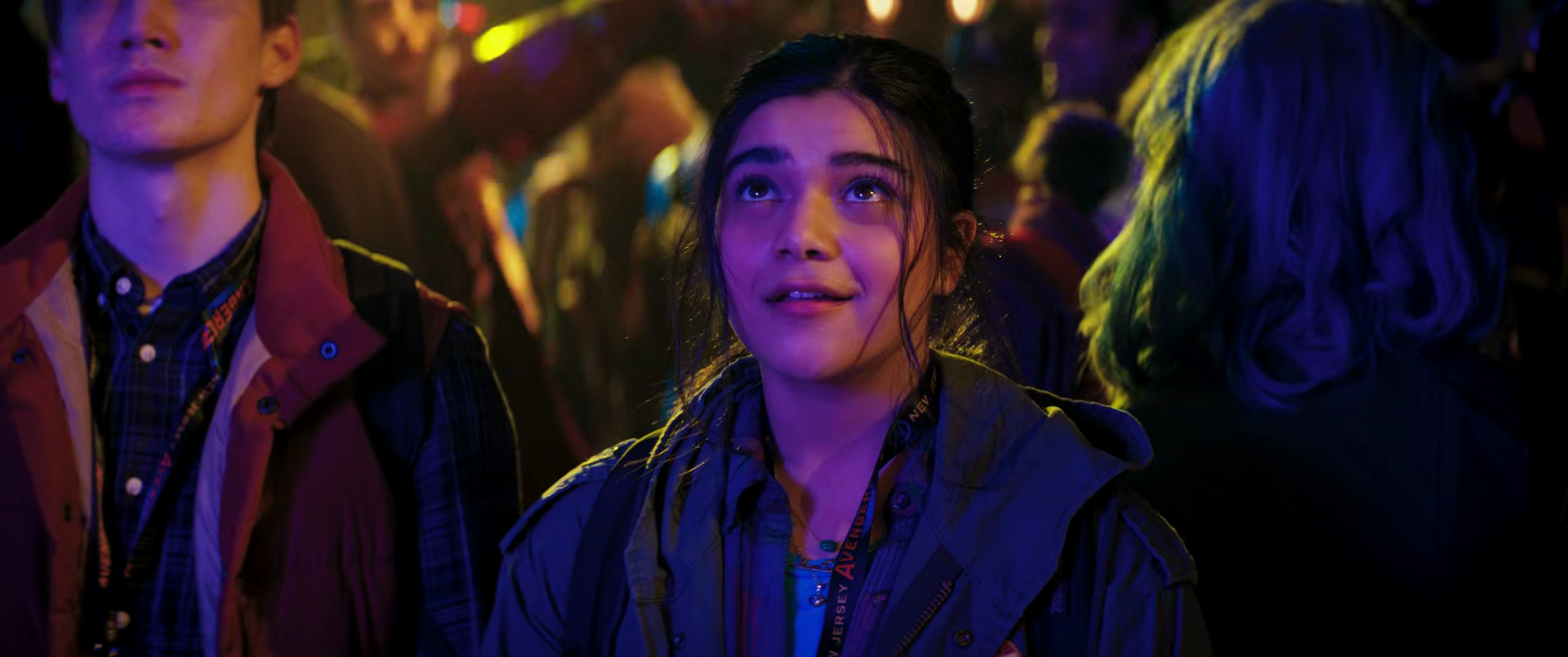 Muneeba and Ali arrived and saw Kamala using her powers. Muneeba asked Kamala if she was the "Light Girl" that had recently appeared in Jersey City and she said that she was. Kamala then gave Ali the picture that Aisha gave her. Before they went back to Ali's house, Kamala went to find Kareem to say goodbye to him. He told her that Waleed would be really proud of her. Kamala thanked Kareem for everything, and he told her that if she ever needed anything, he was just a call away. He then gave her his red scarf before leaving and Muneeba found Kamala's broken necklace on the ground.