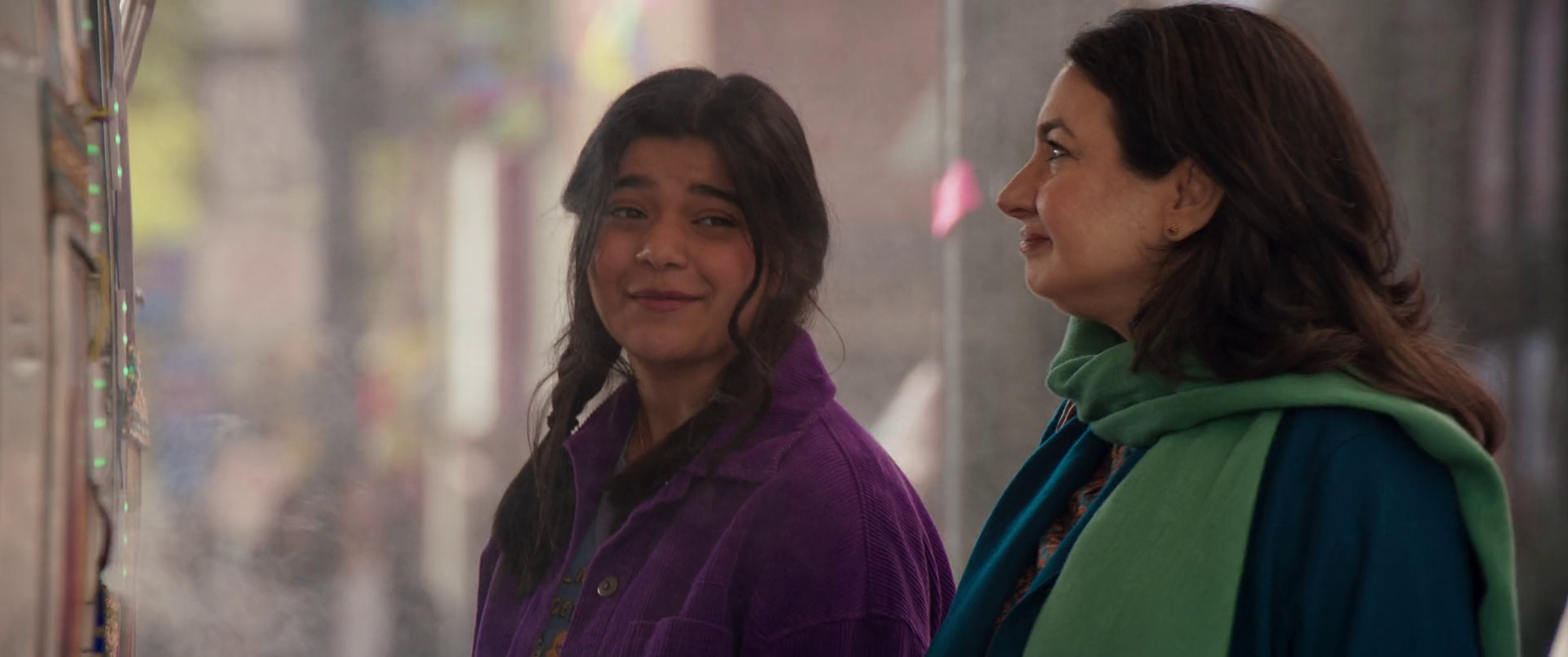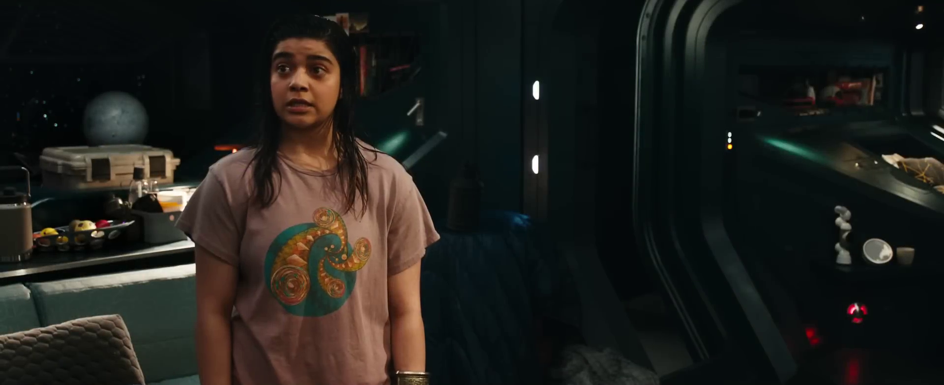 Before her family left, Kamala told them she needed to stop Dar-Benn so they could be safe. Muneeba Khan told Kamala that she was chosen for a greater purpose, so she had to go save them. However, she would never let her go. Aamir Khan told Kamala to come back as he did not want to be an only child. Nick Fury then asked if it was wise that Kamala is taking the bangle with her. Kamala responded that it was the only way to close the rifts by created Dar-Benn.
