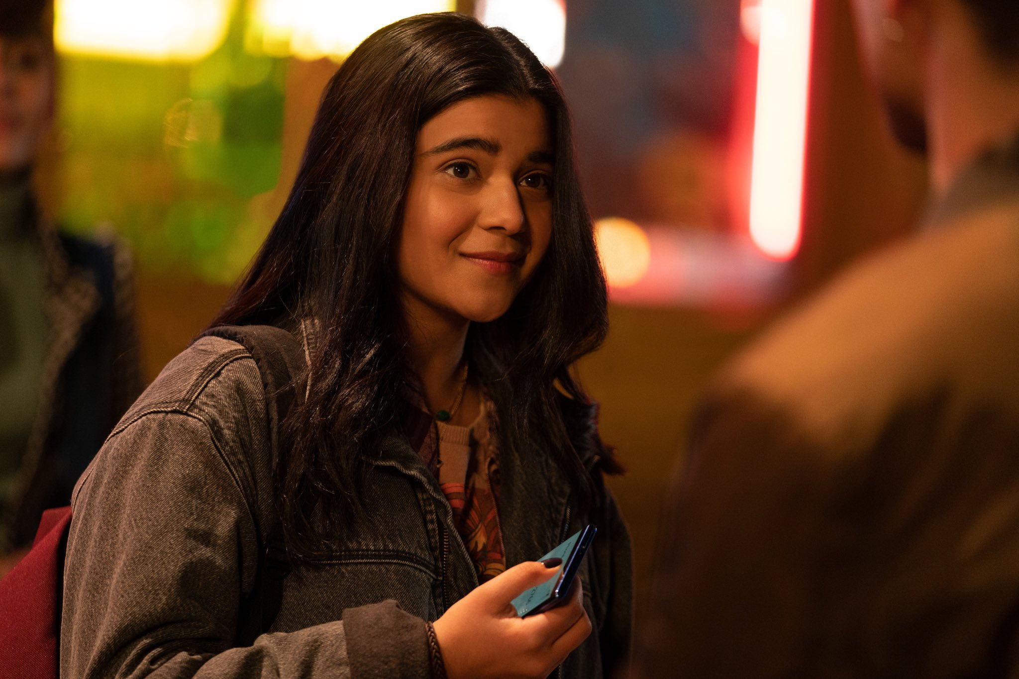 Khan returned home and apologized to her mother for sneaking out to the New Jersey AvengerCon. She then asked her if she could attend Zoe Zimmer's party. With approval, Khan arrived at the Zimmer Residence with her friends and introduced herself to Kamran after he dived into a pool off of a roof. Unexpectedly, the cops arrived, and Kamran told Khan and her friends that he had a car and that they could come with him. In Kamran's car, Khan and he bonded over their shared interests. After being dropped off at Circle Q, Kamran gave Khan his number and told her to text or call him if she wanted a driving lesson.