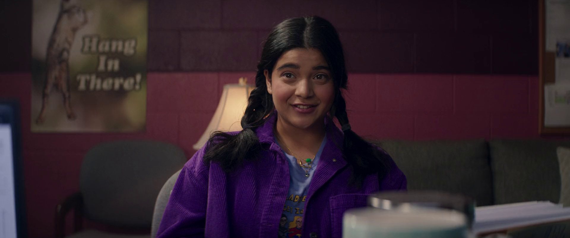 Kamala instantly found herself in trouble with Muneeba and Yusuf Khan, who were mad at her for breaking her closet door. Kamala tried to explain that it was not her and she was in space, which Muneeba did not believe. Yusuf claimed that maybe Captain Marvel broke it. This made Kamala stop in her tracks. Muneeba explained that Captain Marvel had been in their house. Yusuf got worried that Danvers was pressuring Kamala. However, Aamir Khan thought that they were working together. All of the outside voices meant nothing to Kamala as she took in that Danvers was in her room. She then excitedly exclaimed that her dreams were happening.[4]