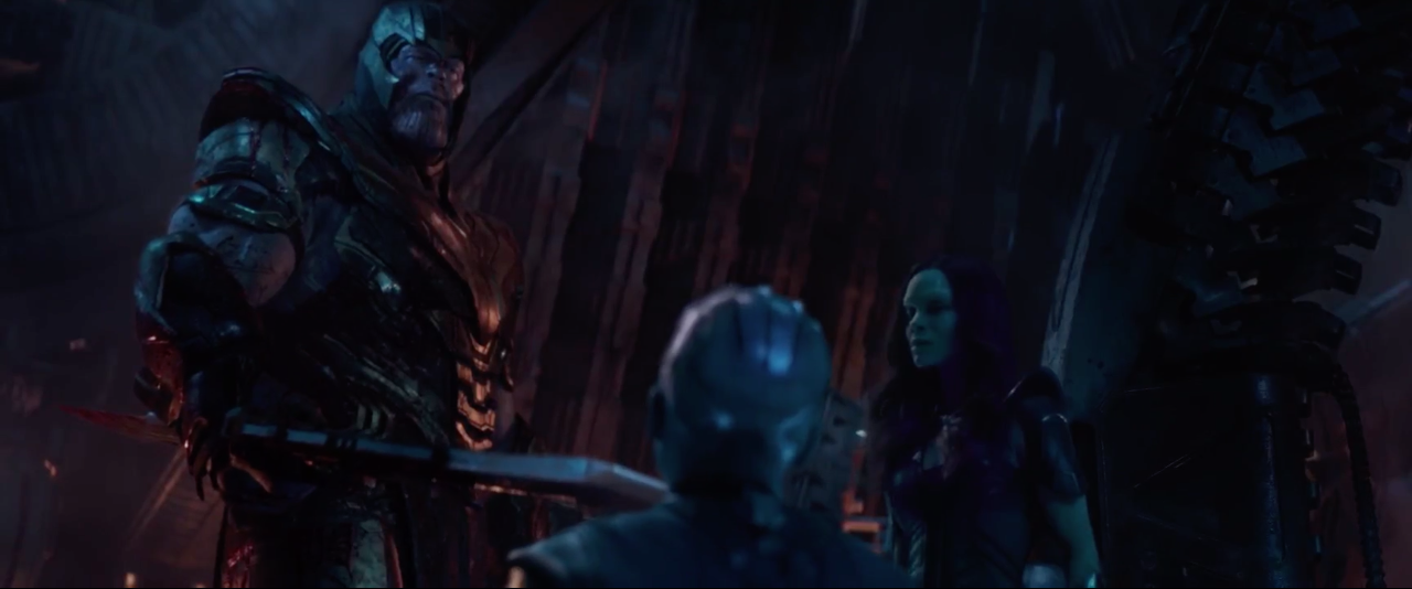The two returned to one of Thanos' Q-Ships and discussed the prospect of him obtaining all six of the Infinity Stones and completing his plan. Suddenly, Thanos appeared in front of Nebula and Gamora, wiping blood off his Double-Edged Sword, and he informs them that Ronan the Accuser has located the Power Stone, and announces that he is planning to dispatch the two assassins to the Dark Aster to oversee the retrieval of the stone for him.
