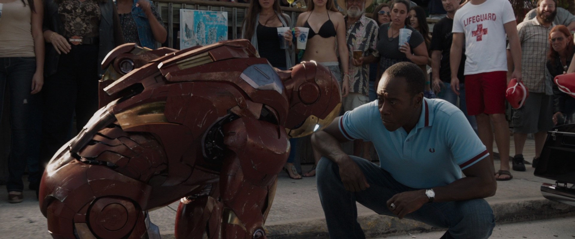 Tony Stark met with his friend James Rhodes for lunch at Neptune's Net, mocking the rebrand of his War Machine persona into Iron Patriot, while Rhodes defended it as it sends a less aggressive message.