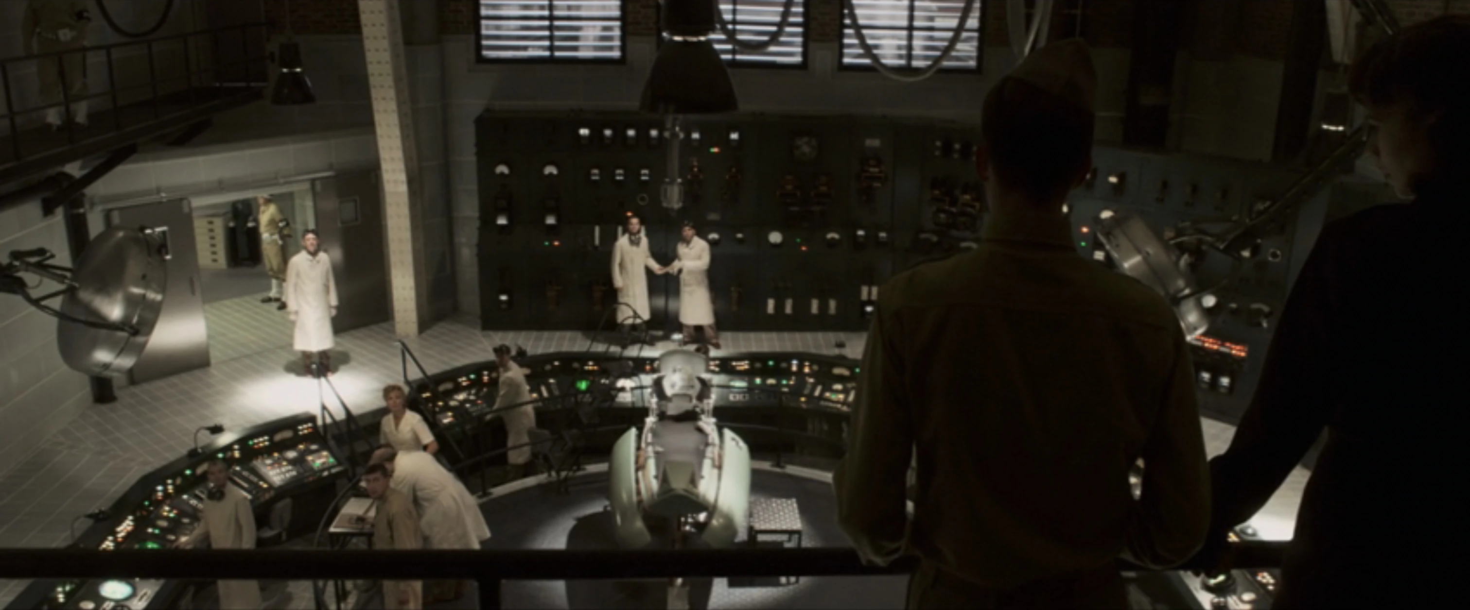 Doctor Abraham Erskine, Howard Stark and Colonel Chester Phillips, members of the Strategic Scientific Reserve, oversaw the completion of the laboratory destined to house Project Rebirth, with Stark noting that it should be called "Brooklyn Project" instead, paralleling Robert Oppenheimer's Manhattan Project in Los Alamos.