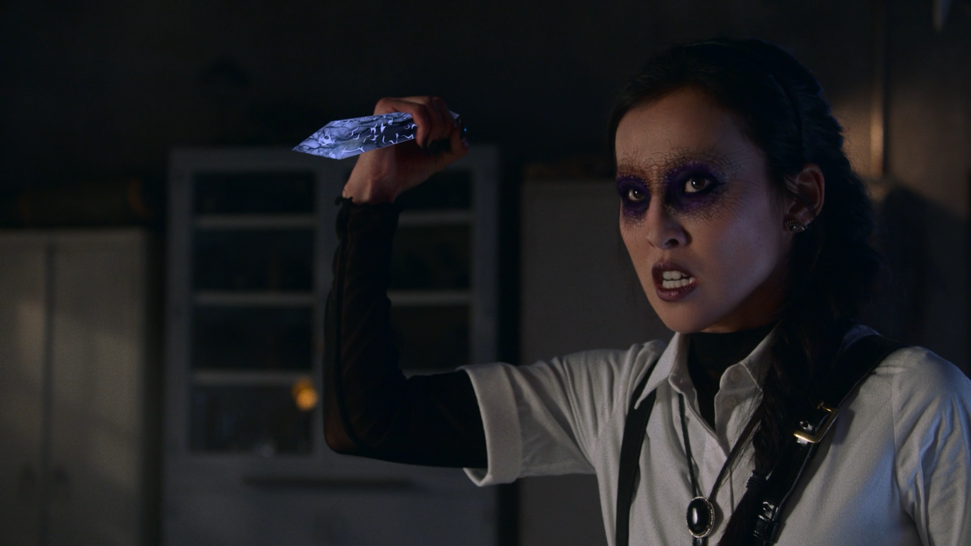 The dagger is a small blade, similar to Tandy Bowen's Lightforce daggers, except gray. The weapon has the ability to kill zombified beings in the Dark Dimension, such as Quinton the Great. However, on Earth, it has the opposite affect, making people like Morgan le Fay more powerful.