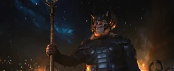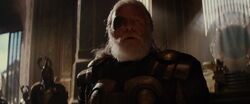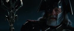 When the Dark Elves attacked against Asgard by sending in their Dark Elf Harrows to attack Asgard's defenses, Odin led a troop to put down the rebellion in the Asgardian Dungeons led by Kurse. Along the way, he came across Frigga and Jane Foster; he assured Frigga that there was nothing to fear and smiled as she showed her fear for his safety. Odin said that even after he had survived so many previous battles, his wife still worries for him; she reminded him that it was due to her worrying that he had survived for so long.