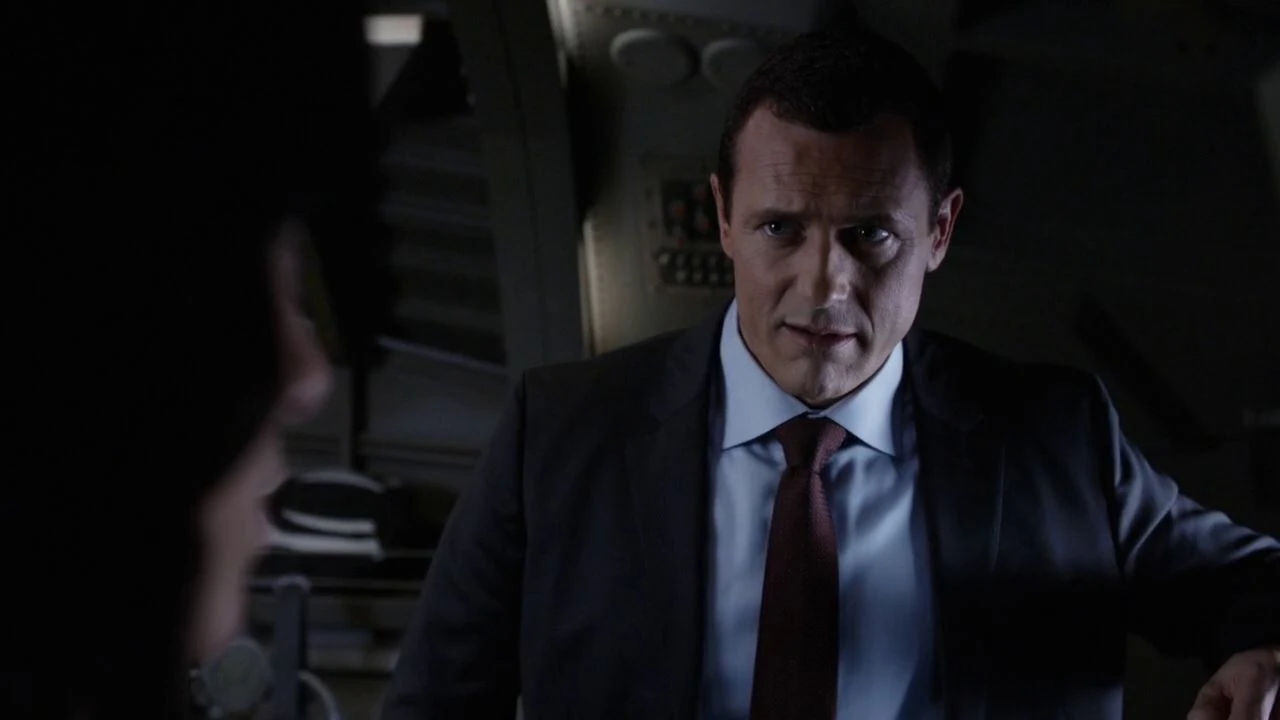 Following a quick photo op with the members of Congress who were still completely unaware of the incident involving Chen in the other room, Mace sent the representatives on their way saying that what they had seen was confidential until S.H.I.E.L.D. was then officially announced to be returning to the world. While the congressmen were then loaded into Zephyr One to be returned home, Mace took the time to speak to Coulson for a complete debrief about what had occurred involving May and Chen while the tour was happening, with Coulson demanding to know what had happened with May.