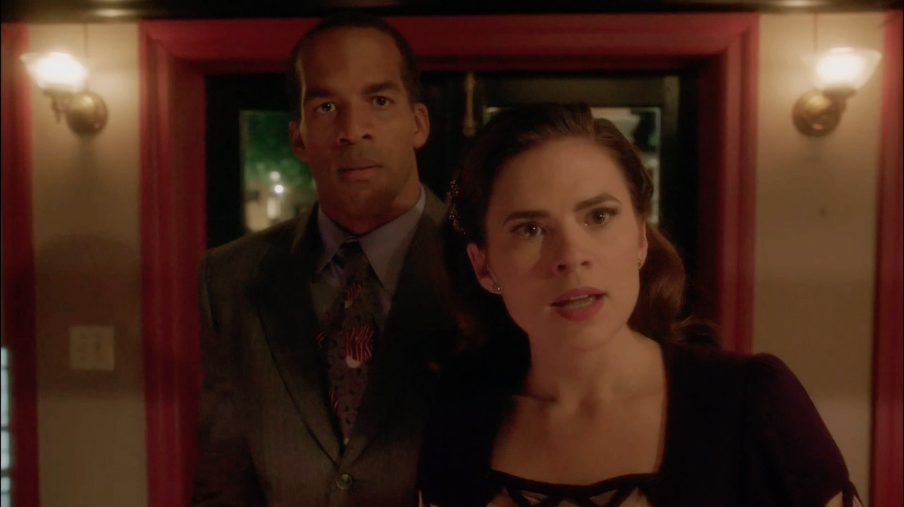 That night, Carter and Sousa headed to the Chadwick Residence, where they waited for Manfredi to get Frost out of her room. When Frost left, they entered the room and took pictures of Frost's notes. As they did, Sousa expressed his gratitude in getting to work with Carter again. When they finished, they overheard Frost returning, so they escaped through the window. Carter and Sousa headed to the Agency to give the photos to Stark, Wilkes and Samberly.[35]