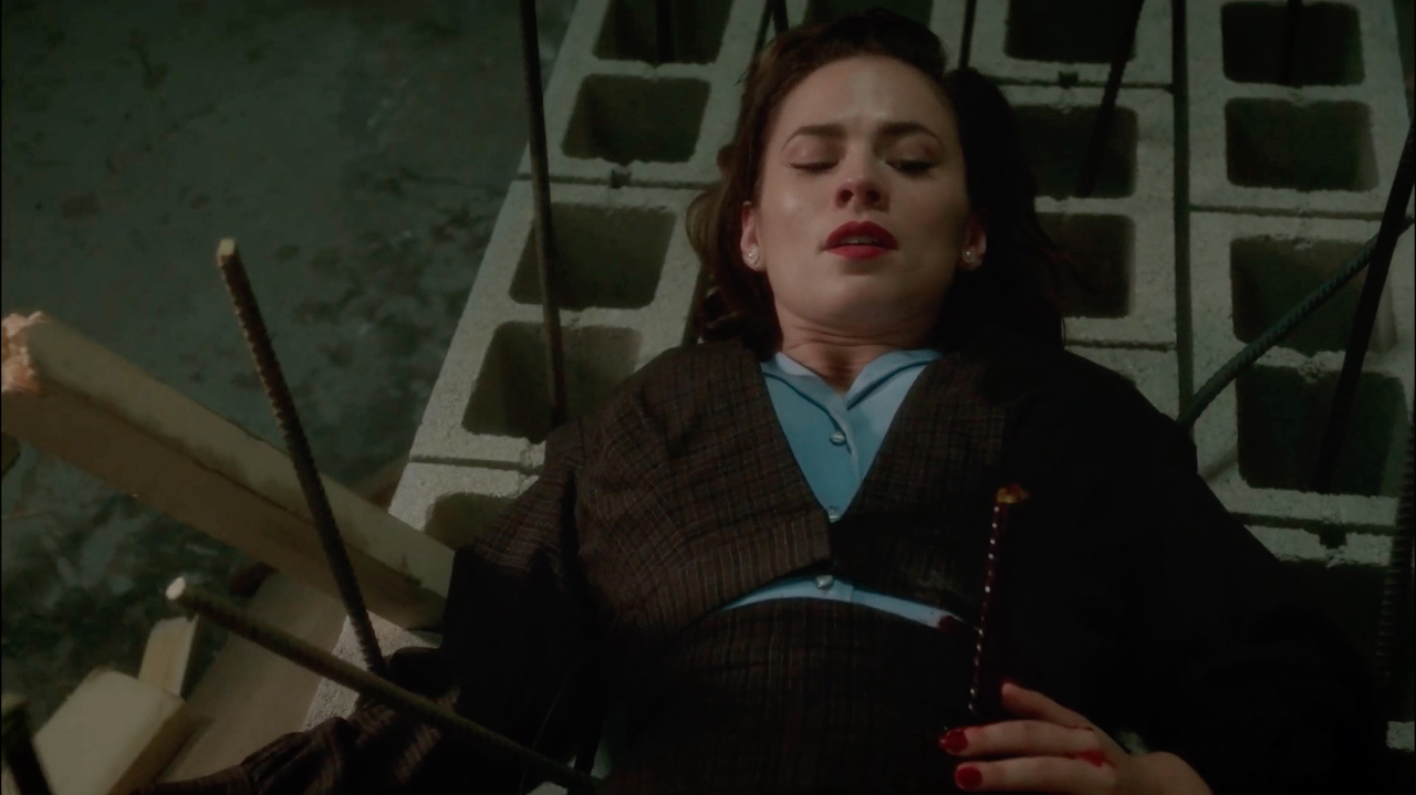 While Edwin Jarvis and Dottie Underwood attempted to retrieve Whitney Frost's blood sample, Carter and Daniel Sousa stayed outside in a van to manage communications. Suddenly, Underwood's radio seemingly went dead. When Carter went to see what happened, she accidentally ripped open her stitches trying to open the door to the van.