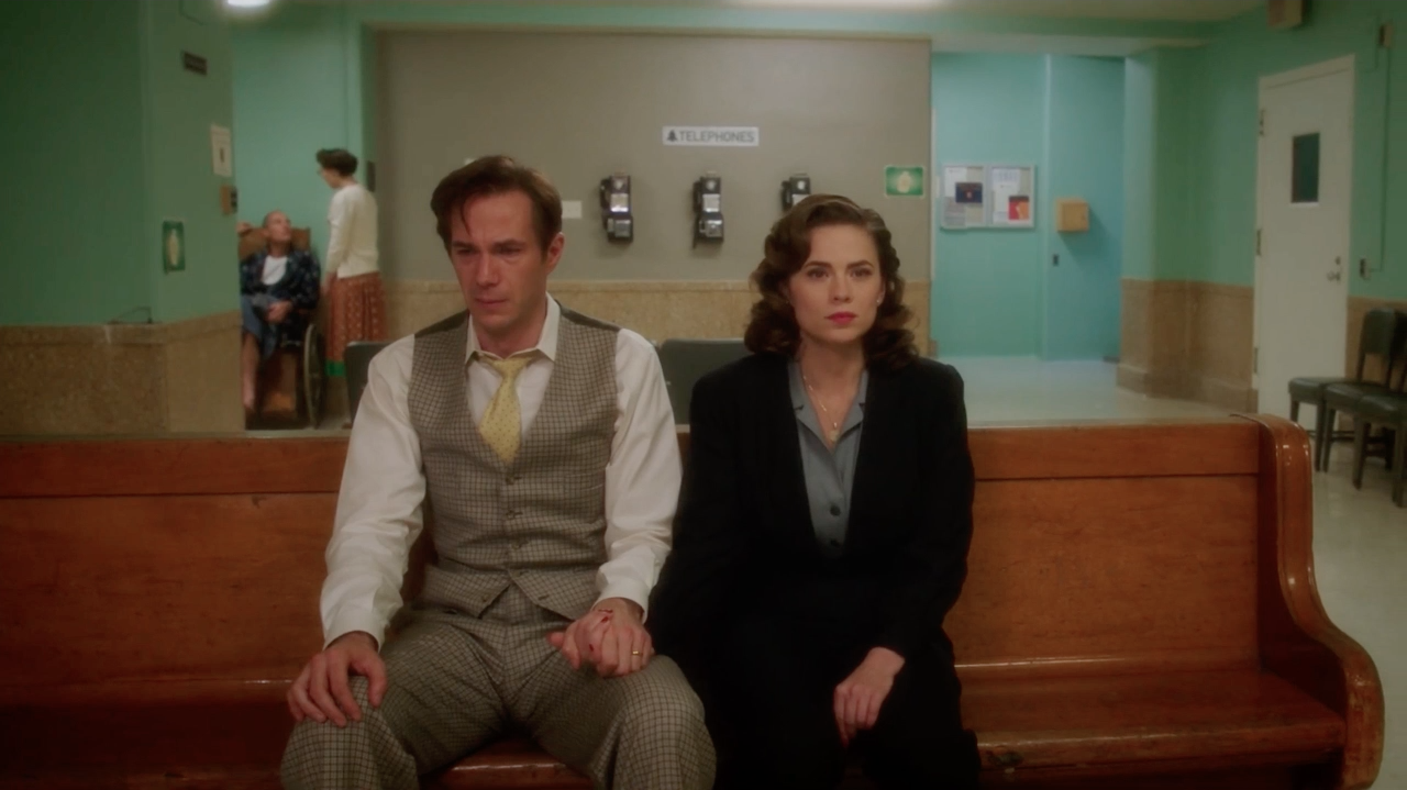 Back at Howard Stark's Penthouse, Edwin Jarvis tended to her wounds and told Carter that despite all her skills she could not handle everything by herself. When Carter argued that Steve Rogers could, Jarvis reminded her that Rogers would often rely on her for moral guidance and strength. He asked her to let him help her more; Carter felt comforted by his words and told him to continue stitching her wound.