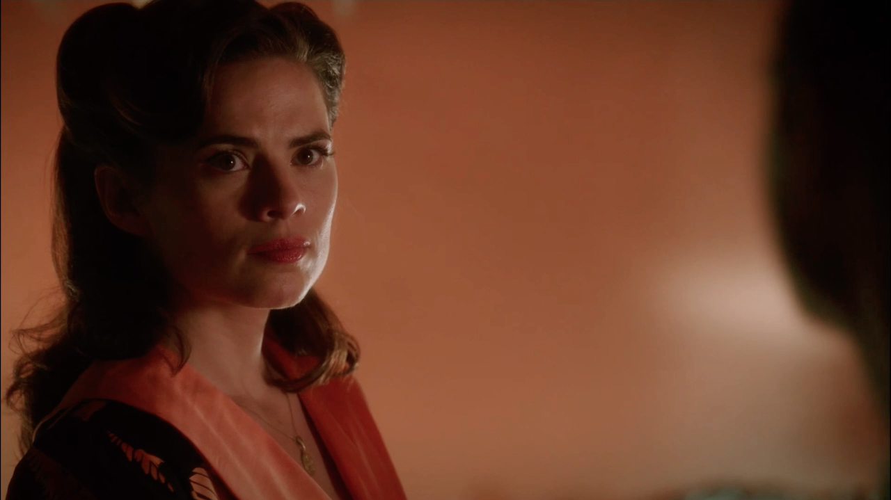 When Ana Jarvis got out of surgery, she had not woken up, so Carter stayed with Edwin Jarvis to help him. When Jarvis got angry, Carter tried to comfort him in the fact that Ana was alive, but Jarvis did not know if she would ever wake up. Carter then left to collect some items for Jarvis from Howard Stark's Estate. When Carter arrived at the estate, she talked with Daniel Sousa about what had happened. Sousa then told Carter how Whitney Frost wanted the uranium rods, so Carter decided to use that to try and get Jason Wilkes back.