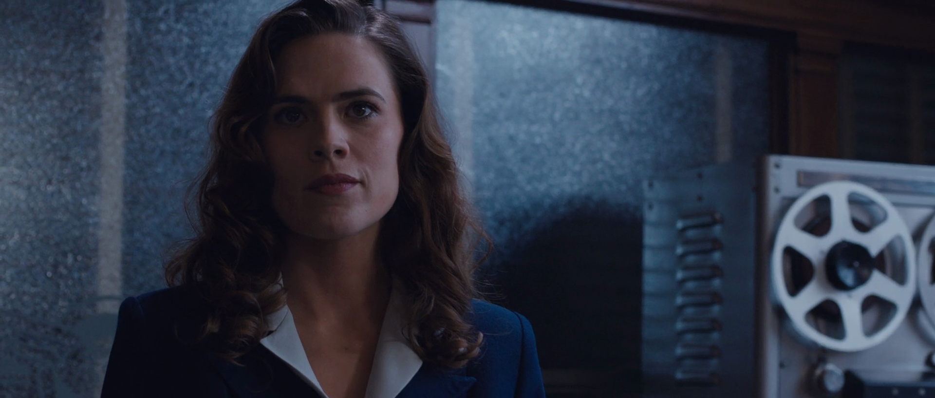 As soon as they stepped inside the main room, Carter observed all of the scientists turning and looking at Rogers, awaiting the beginning of the experiment, before Abraham Erskine greeted Rogers. While Rogers was instructed to remove his shirt, shoes and hat ready for them to begin their experiment, Howard Stark prepped the machinery for the experiment to work as Carter looked back on Rogers for his well-being.