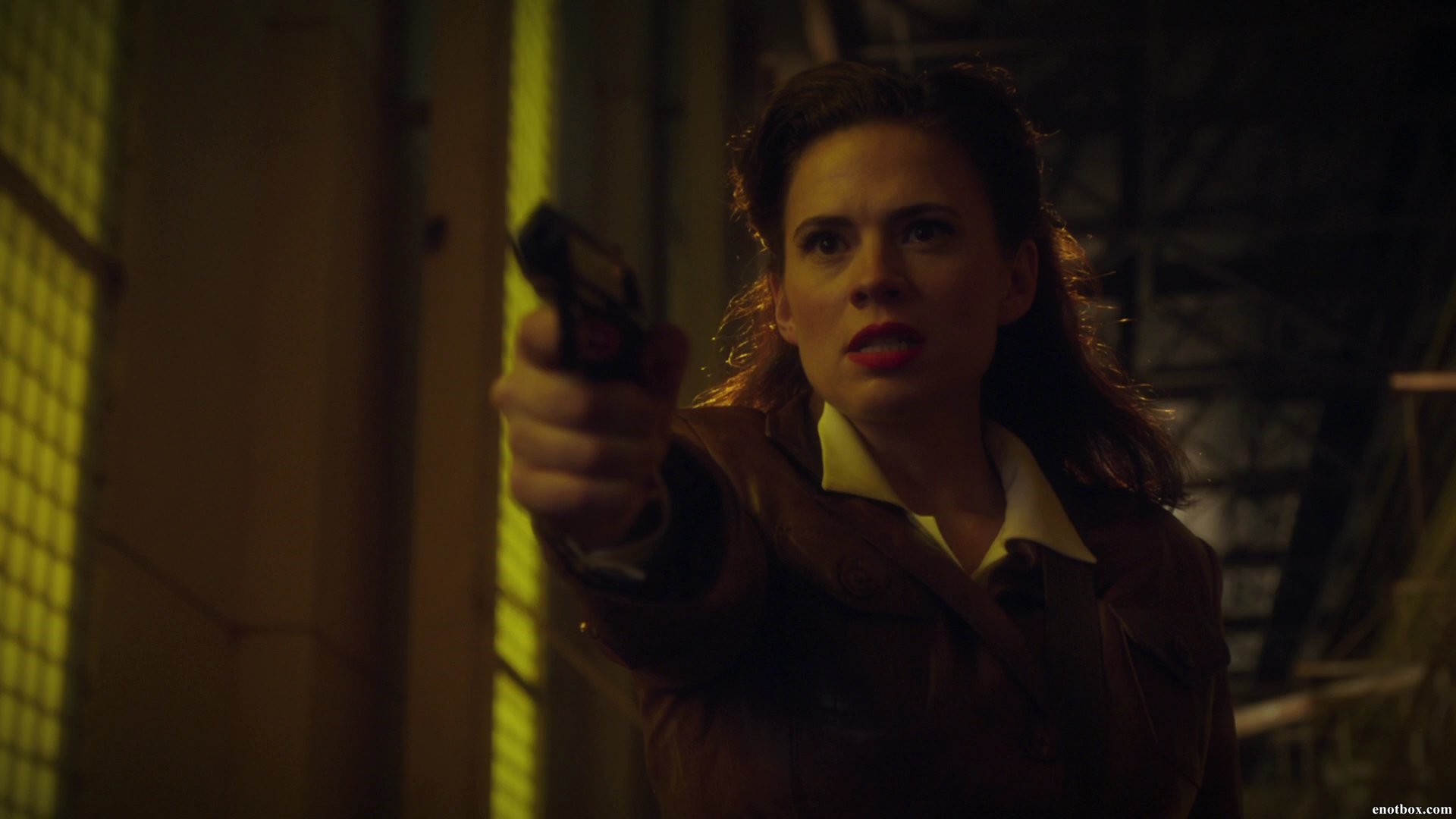 Colt M1911A1: Carter chose this pistol from the arsenal at the Strategic Scientific Reserve Headquarters, and used it to shoot at Steve Rogers, testing the resistance of a VibraniumShield he was carrying. Some years later, Carter obtained another from one of the Manfredi Crime Family members that were sent back to the desert to recapture her and Edwin Jarvis, using it to threaten the two goons and escape in the van where they had previously been kept as hostages.