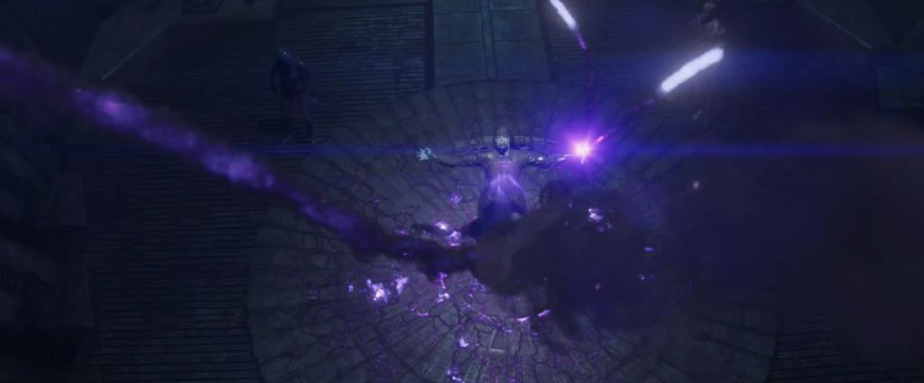 The Power Stone can be safely used via a conduit, such as the Universal Weapon or Infinity Gauntlet, preventing the need to touch the Stone while still being able to utilize its power. Successful wielders of the Power Stone, both directly and indirectly via a conduit, are able to project its destructive power to both enhance attacks and violently destroy targets, even entire planets. This can manifest through fiery purple energy beams, waves, or even melee attacks, as demonstrated by Thanos using the Stone directly to knock out Captain Marvel with an enhanced punch.