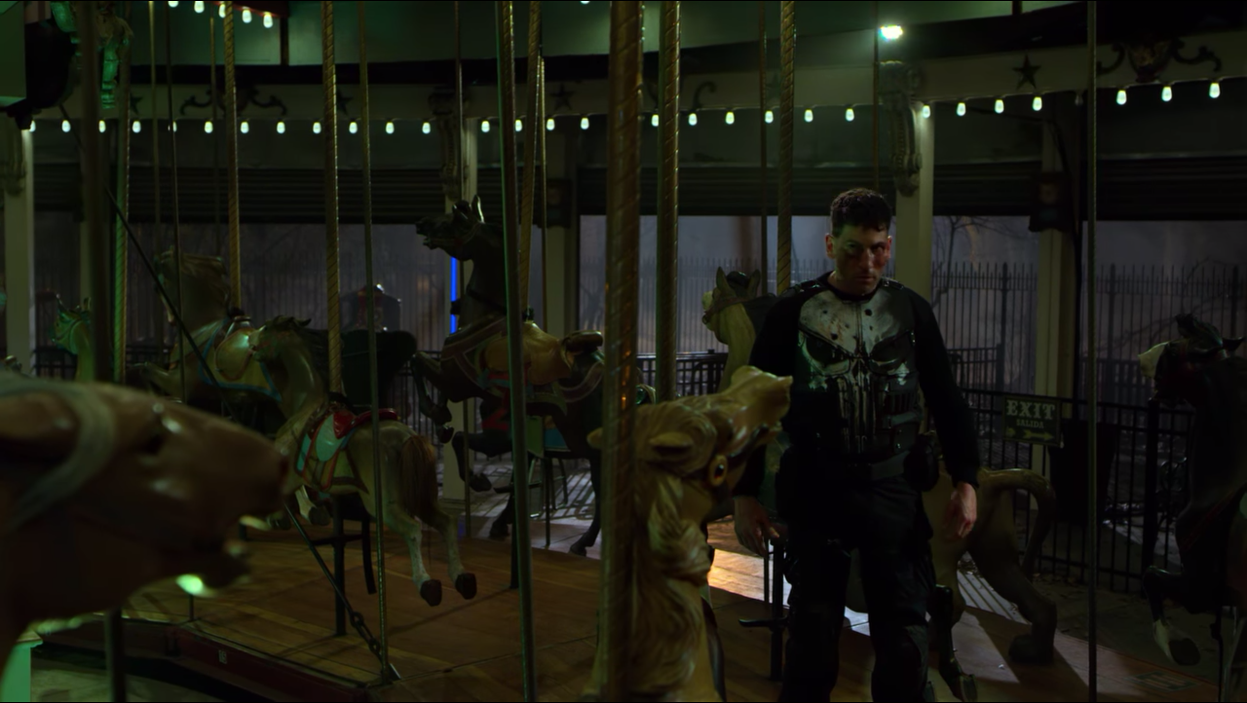 Castle took time to himself to sit alone in Central Park in front of the carousel where his family was massacred, watching the families play and enjoy their time together. Castle remained in the same spot until the lights were turned off, however, he discovered that he was not alone as members of the Kitchen Irish began to surround him. As more and more people came around him, Castle prepared himself for a fight, despite being highly outnumbered by the mobsters, all of whom were armed although they claimed to want him alive, shooting Castle in the neck with a dart gun.