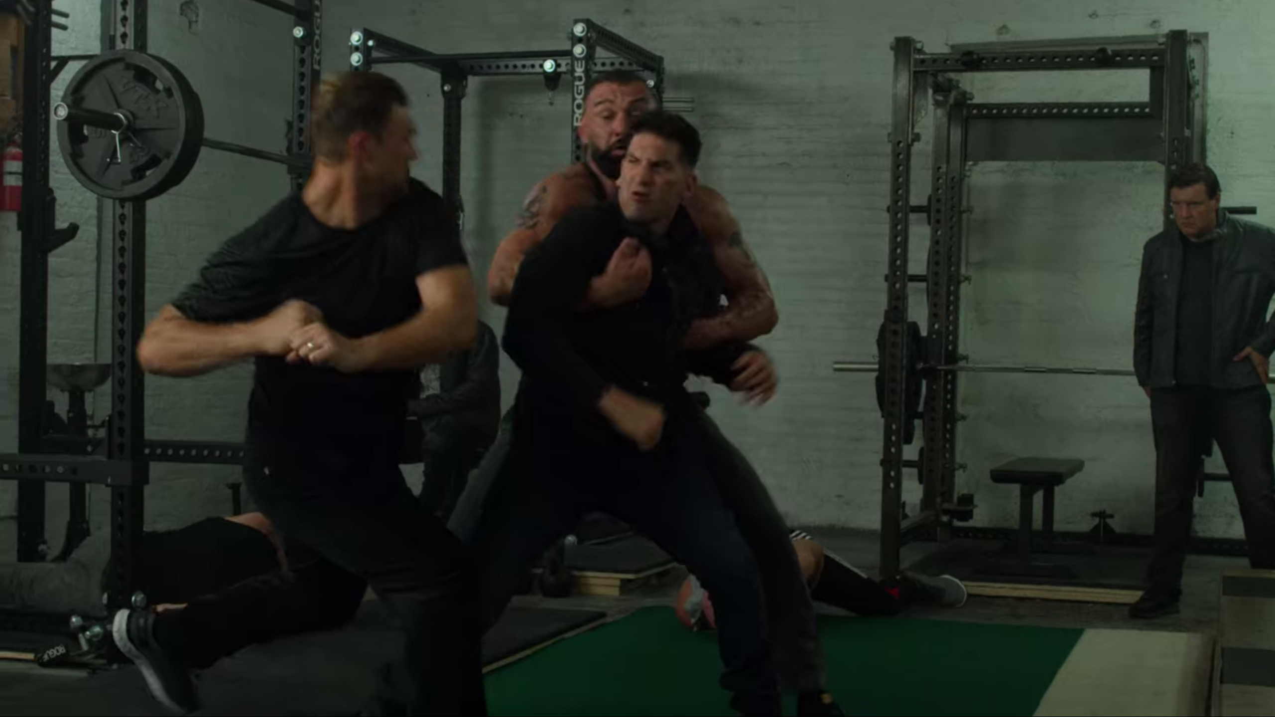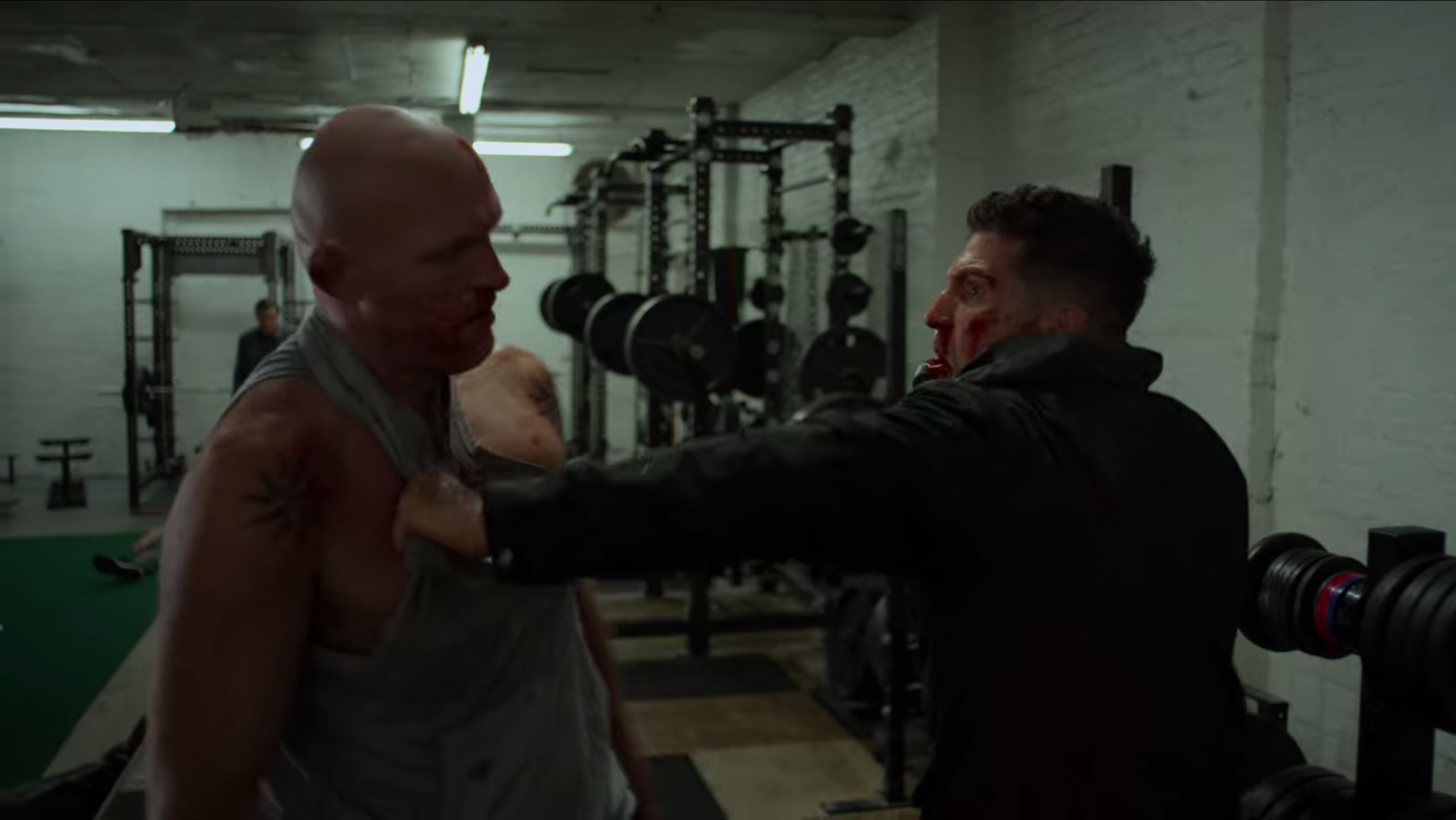 As a former United States Marine Corpsman with years of experience, Castle is an extremely skilled, formidable, fierce, and lethal hand-to-hand combatant, making him one of the most dangerous and best fighters on the planet. He was able to go toe-to-toe against the enormously skilled Daredevil, even briefly gaining the upper hand against him in their first encounter. His fighting style includes martial arts disciplines from the Marine Corps Martial Arts Program, such as Krav Maga, Boxing, Muay Thai, Brazilian Jiu-Jitsu, Judo, Karate, Wrestling, Combat Hapkido, Savate, Kung Fu, Kickboxing and Taekwondo. He impressed Daredevil with his speed and ferocity, despite the latter ultimately being able to get the upper hand in the fight, with the use of his agility. Hence, Castle, while unarmed, survived being ambushed by multiple armed prison inmates at once, swiftly taking them all down in a brutal bloodthirsty fashion, greatly impressing Wilson Fisk, who claimed that Castle has a "unique talent." Castle also quickly overpowered William Rawlins, held his own against Carson Wolf, and defeated Billy Russo after a prolonged fight. Marion James stated Rawlins looked like he was "hit by a train" after he was overpowered and killed by Castle, and Sam Stein drafted an extensive medical examination after Castle killed Carson Wolf. Marlena Olin later commended his fighting skills after seeing him fight in Lola's Roadhouse. He was able to brutally beat down all the Russians using their gym equipment and switch target every time to hit both of them. Castle could also take down several armed guards in the elevator that armed with firearms and batons and defeat John Pilgrim while being extremely exhausted after multiple injuries he suffered from. Castle possesses a high pain tolerance that allows him to continue fighting even after being beaten by crowbars, dumbbells, punched with a chain-wrapped fist, and even being shot. During his attempted attack on Billy Russo, Castle was able to kill several of Russo's henchmen even after they beat him ruthlessly with crowbars. In fact, being beat only seemed to enrage him more.