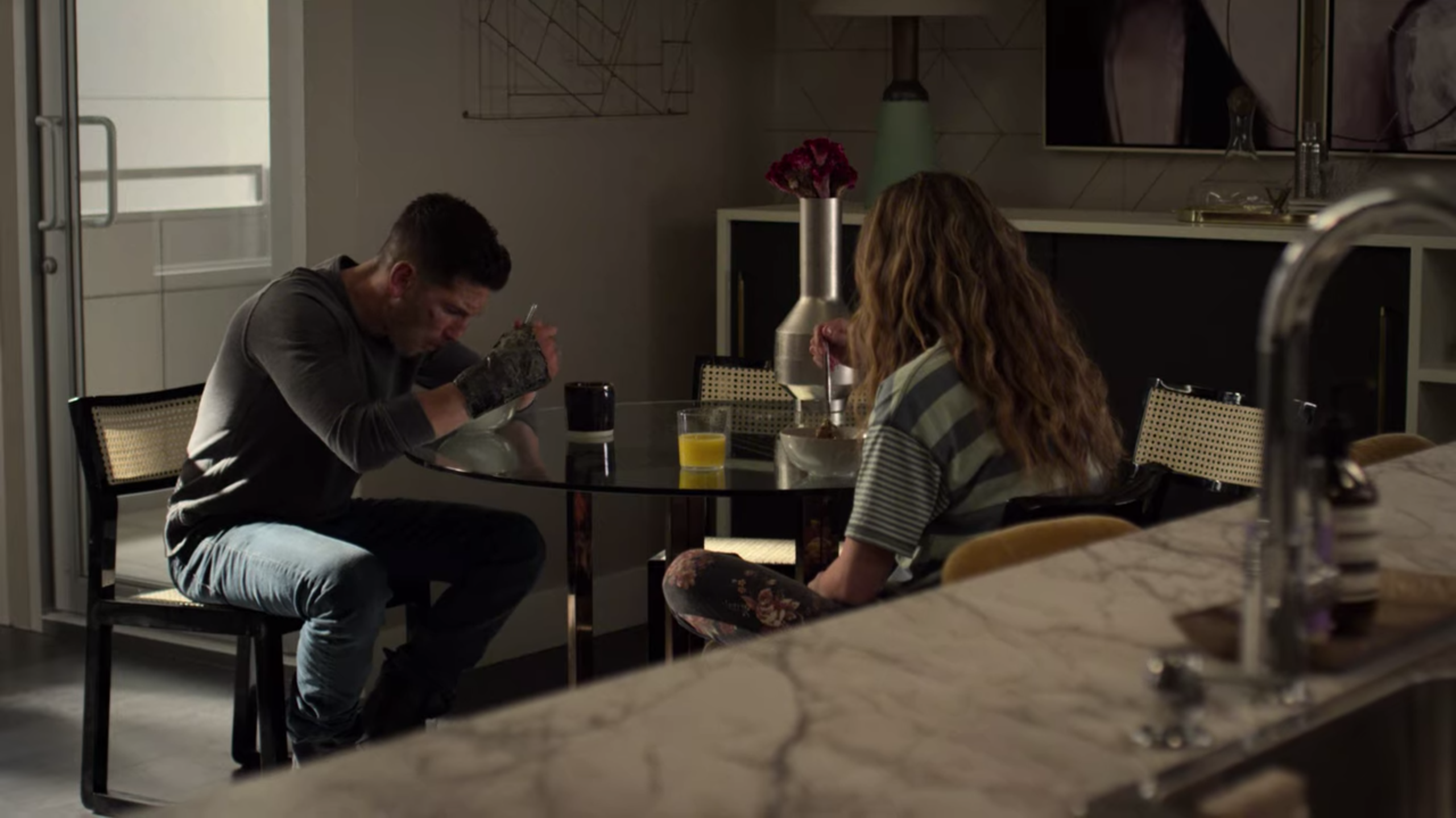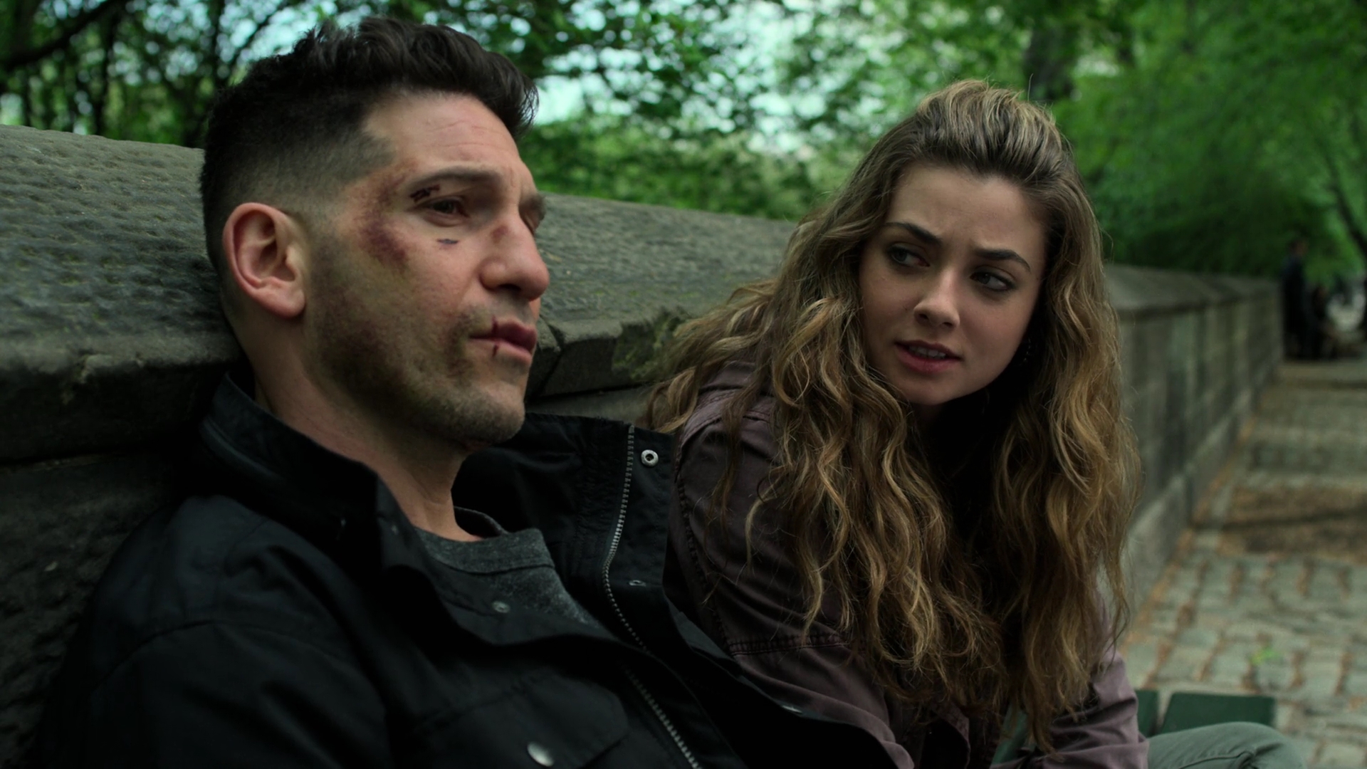 Jon Bernthal made audition tapes together with Tom Holland while filming Pilgrimage, both landing their roles of Frank Castle and Peter Parker, respectively. In the comics, Punisher first appeared as an adversary of Spider-Man.[51]