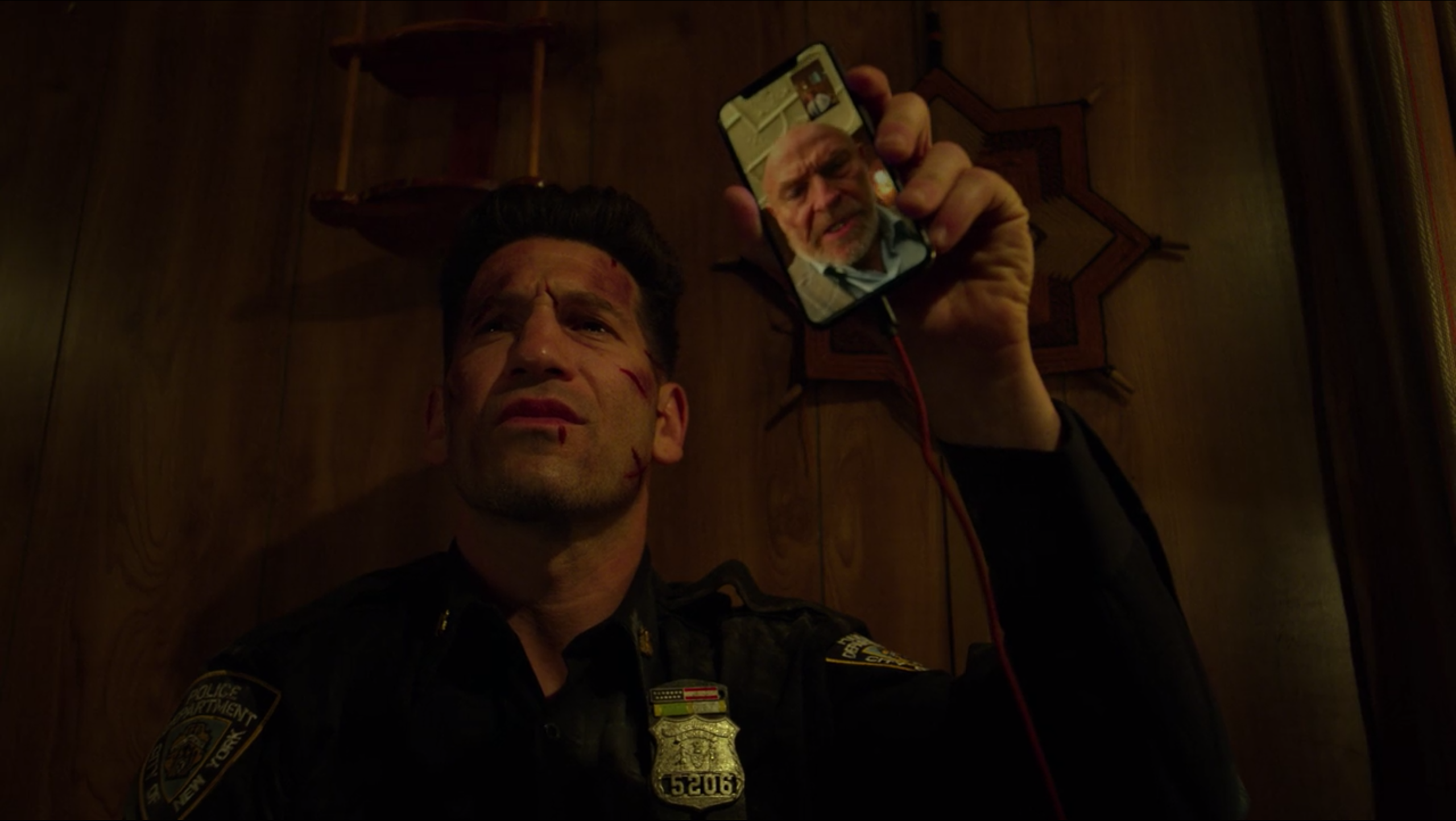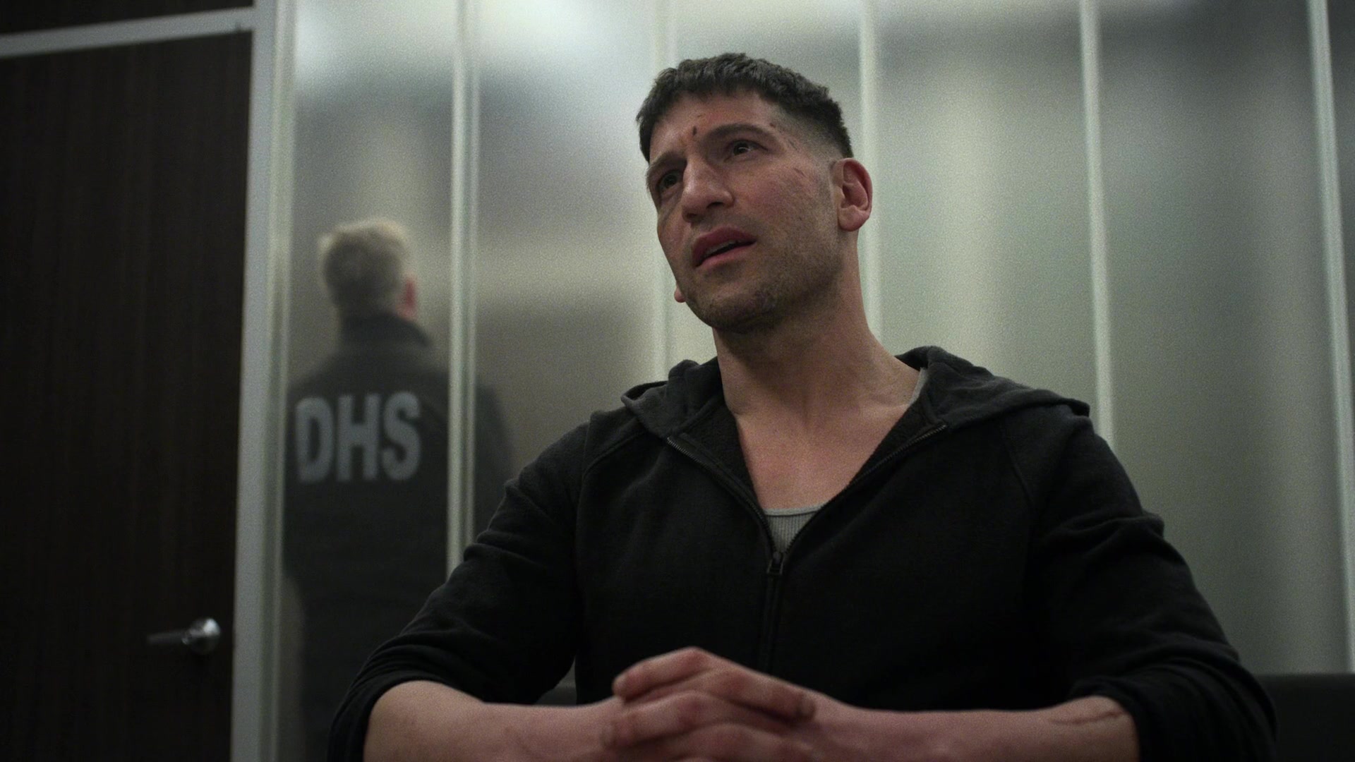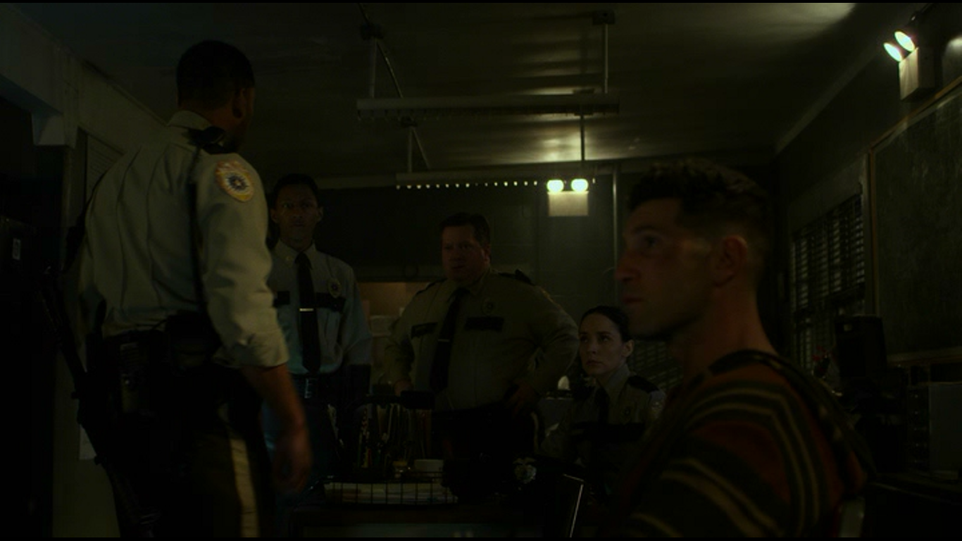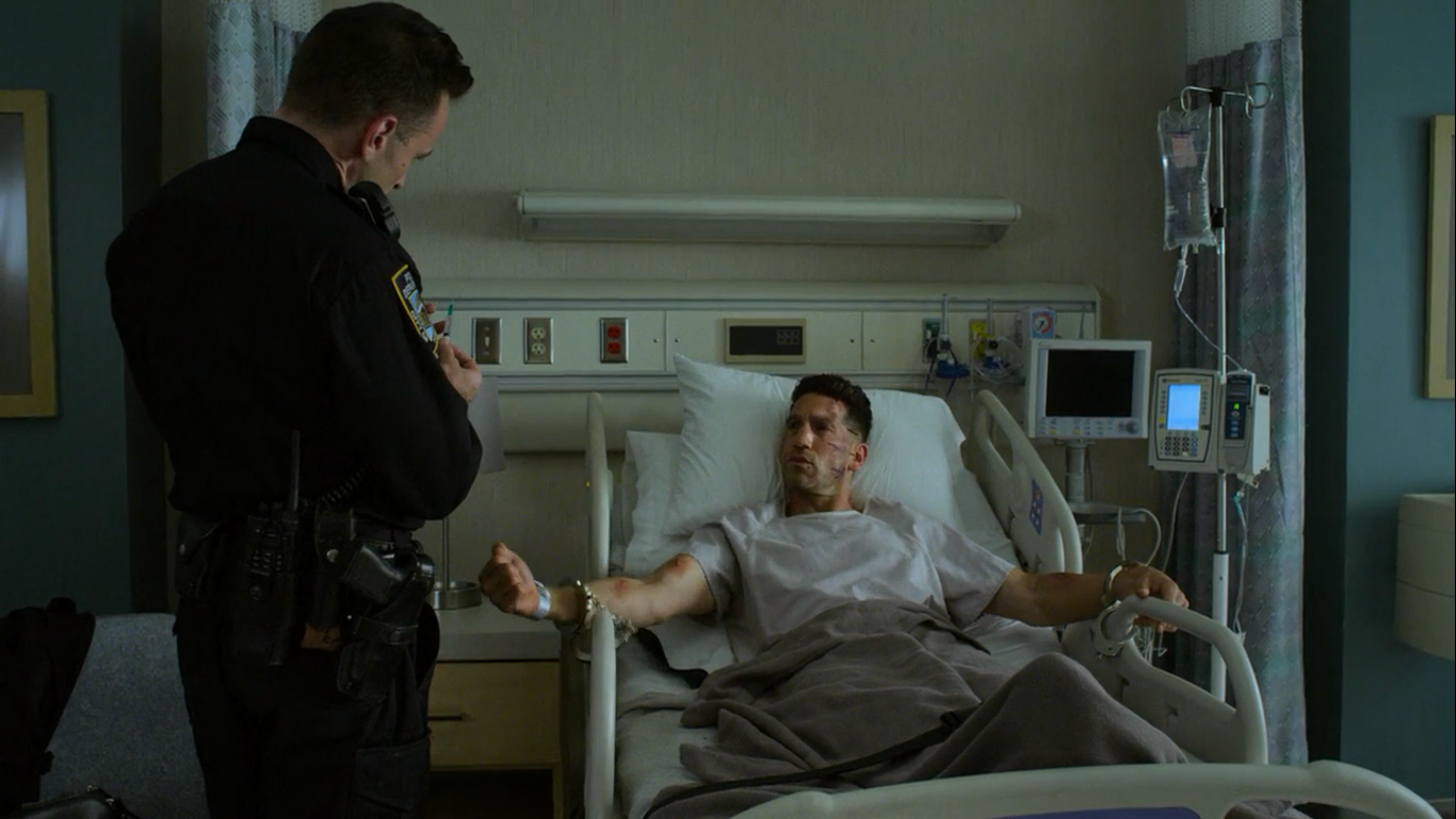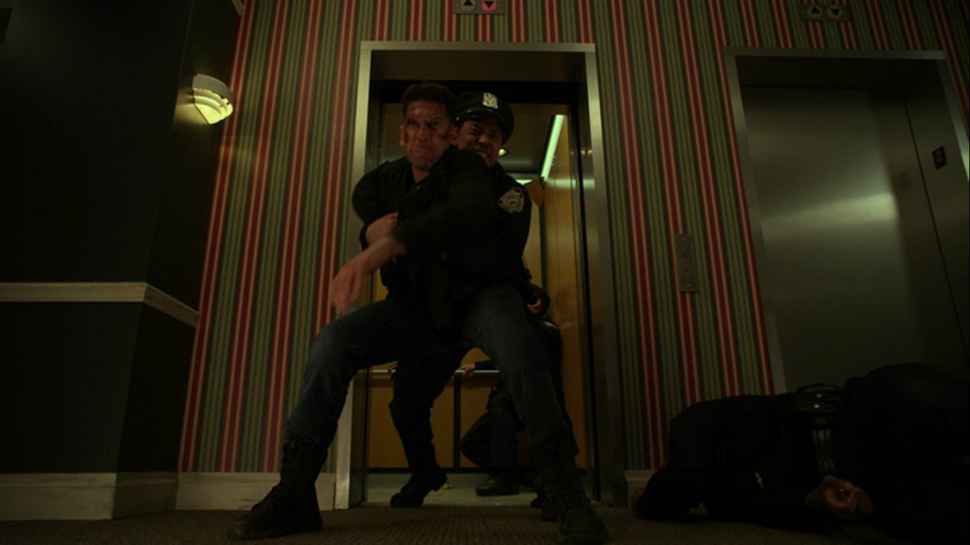 Castle greeted Jerry who had come to investigate the noise he had heard on the rooftop and Castle claimed to be just up there for a cigarette to avoid his crazy sister, whom Jerry assumed was a woman named Betty. When Daredevil tried to free himself and made more noise, Castle distracted Jerry and quietly and covertly aimed his gun at his head to warn Daredevil to remain silent. The pair realized they had both been a part of the United States Marine Corps which gave themselves great respect for each other as Jerry left Castle alone to enjoy his cigarette and peace and quiet.