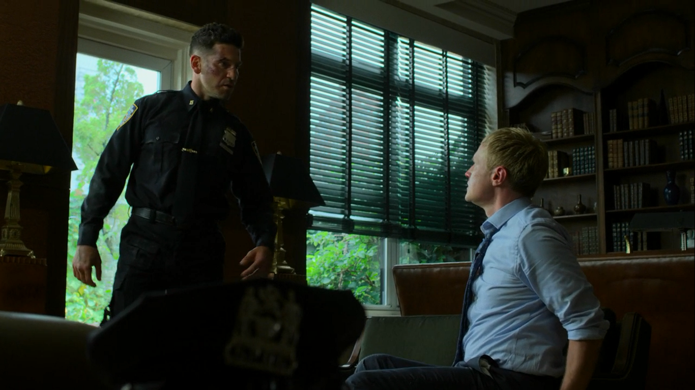 "I think that this world, it needs men that are willing to make the hard call. I think you and me are the same!" "That's bullshit, Frank, and you know it!" "Only I do the one thing that you can't. You hit 'em, and they get back up; I hit 'em, and they stay down! It's permanent!"
