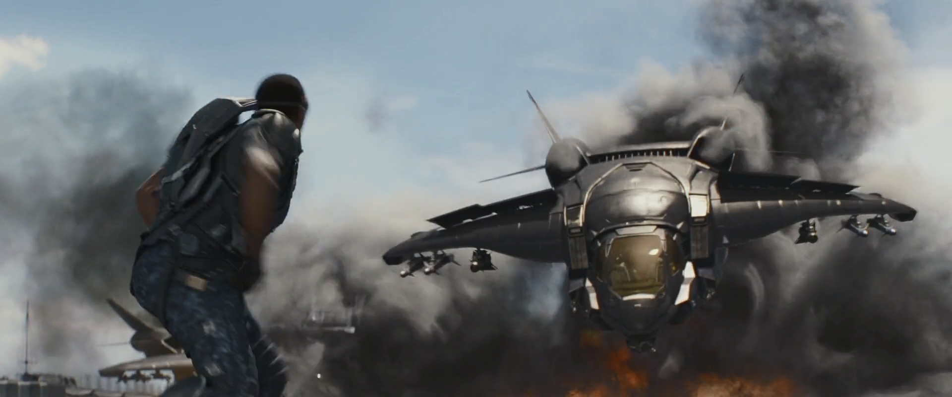 During the Battle at the Triskelion, another Insight Quinjet attempted to shoot down Falcon, only to inadvertently blow a hole in an Insight Helicarrier's underbelly for Falcon to enter. On the grounds of the Triskelion, legitimate S.H.I.E.L.D. pilots attempted to board their Quinjets to support Captain America, but most were destroyed by the Winter Soldier, who took the last one to fly up to the Helicarrier to stop Captain America.[3]