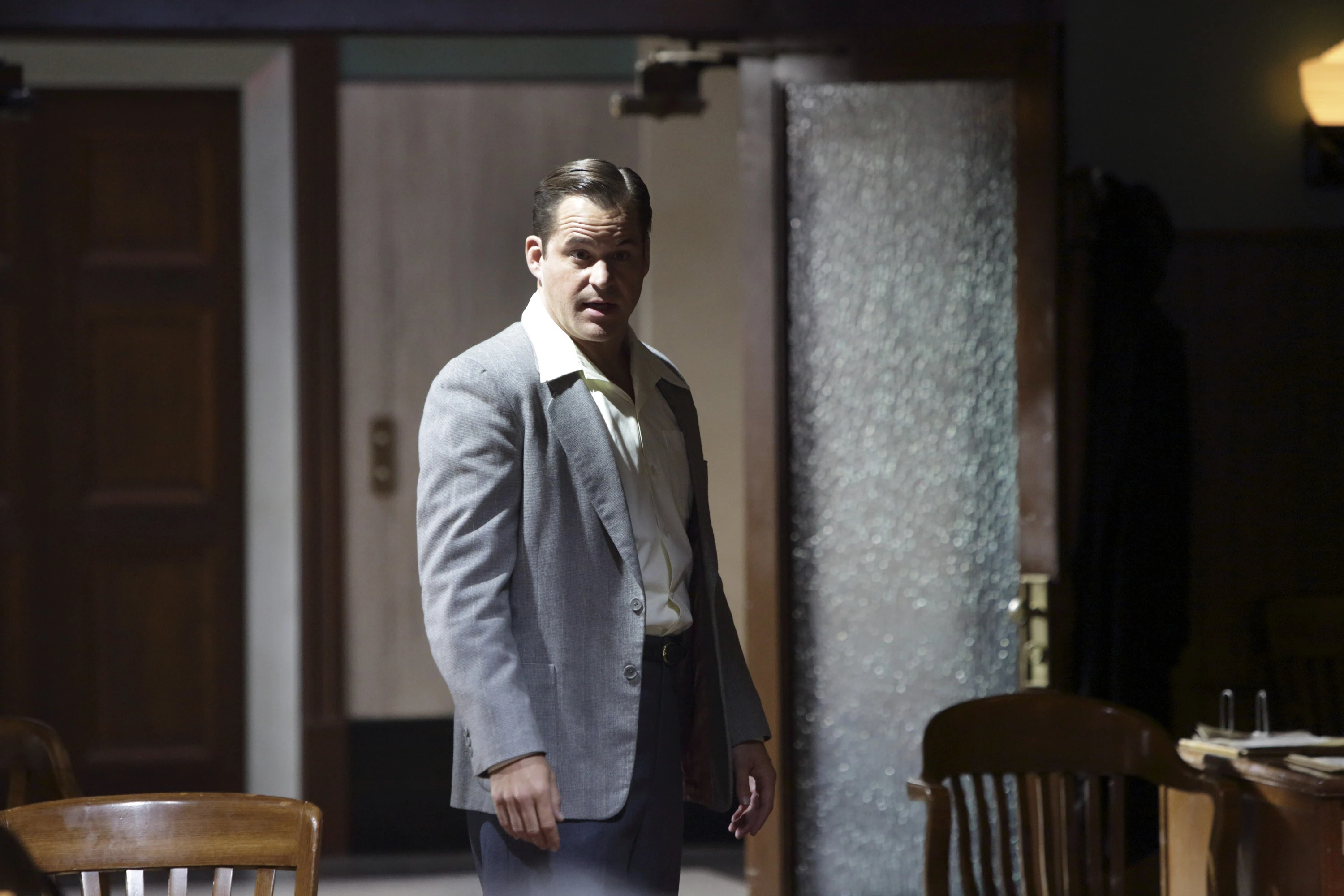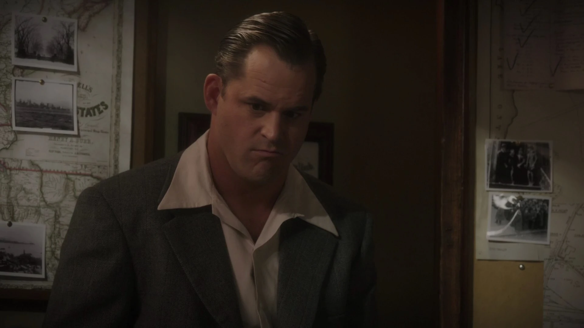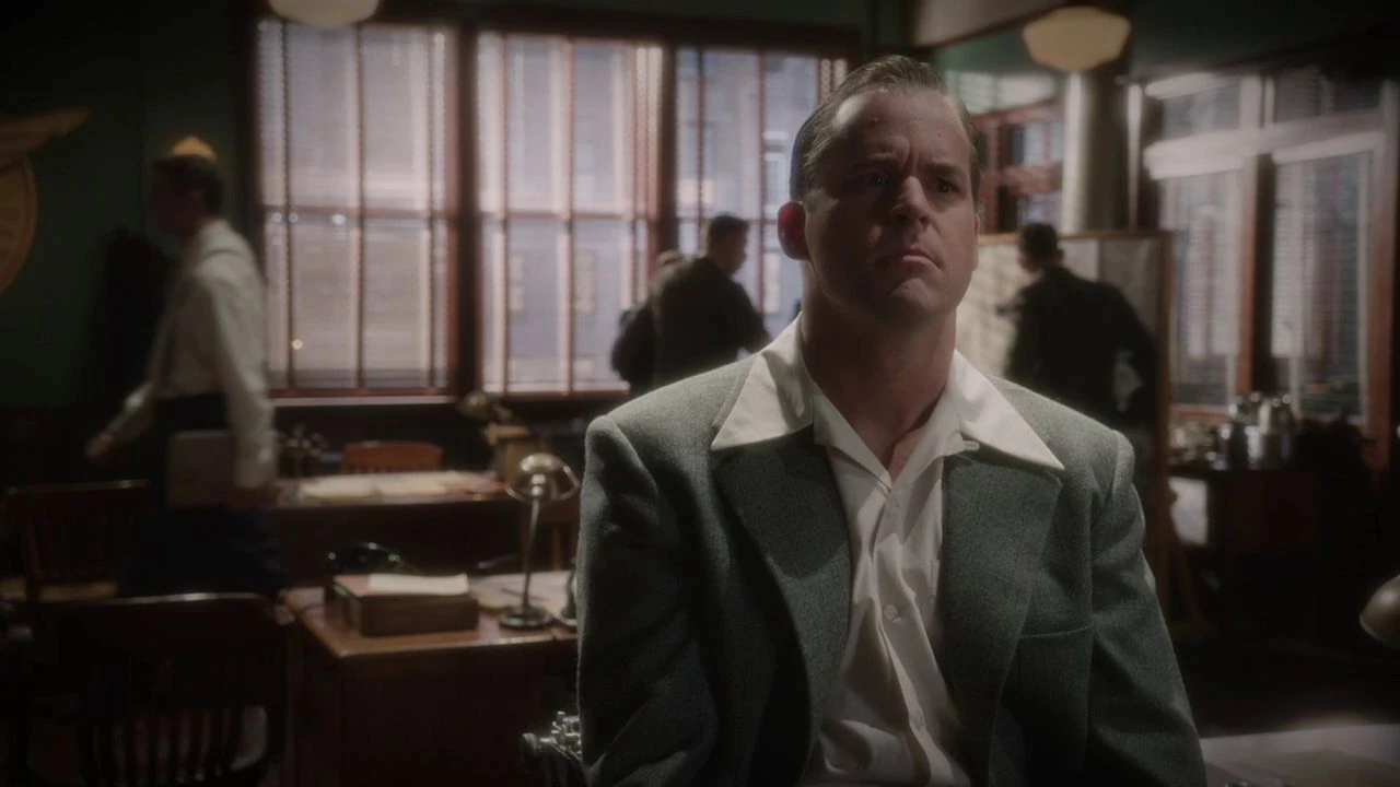 Returning to the New York Bell Company Office, Krzeminski went to Daniel Sousa for assistance and rudely ordered Peggy Carter to sort through a pile of transport reports. He later joined Sousa and Dooley in the interrogation viewing room once they had returned for meeting Hugh Jones at Roxxon and arrested one of his employees named Miles Van Ert. Once Thompson had finished interrogating him, they discussed how he had named Leet Brannis as his conspirator and links to Daisy Clover driver Sheldon McFee. Sousa mocked Krzeminski by comparing him to Van Ert as not being the brains of the operation to steal Stark's weapons.