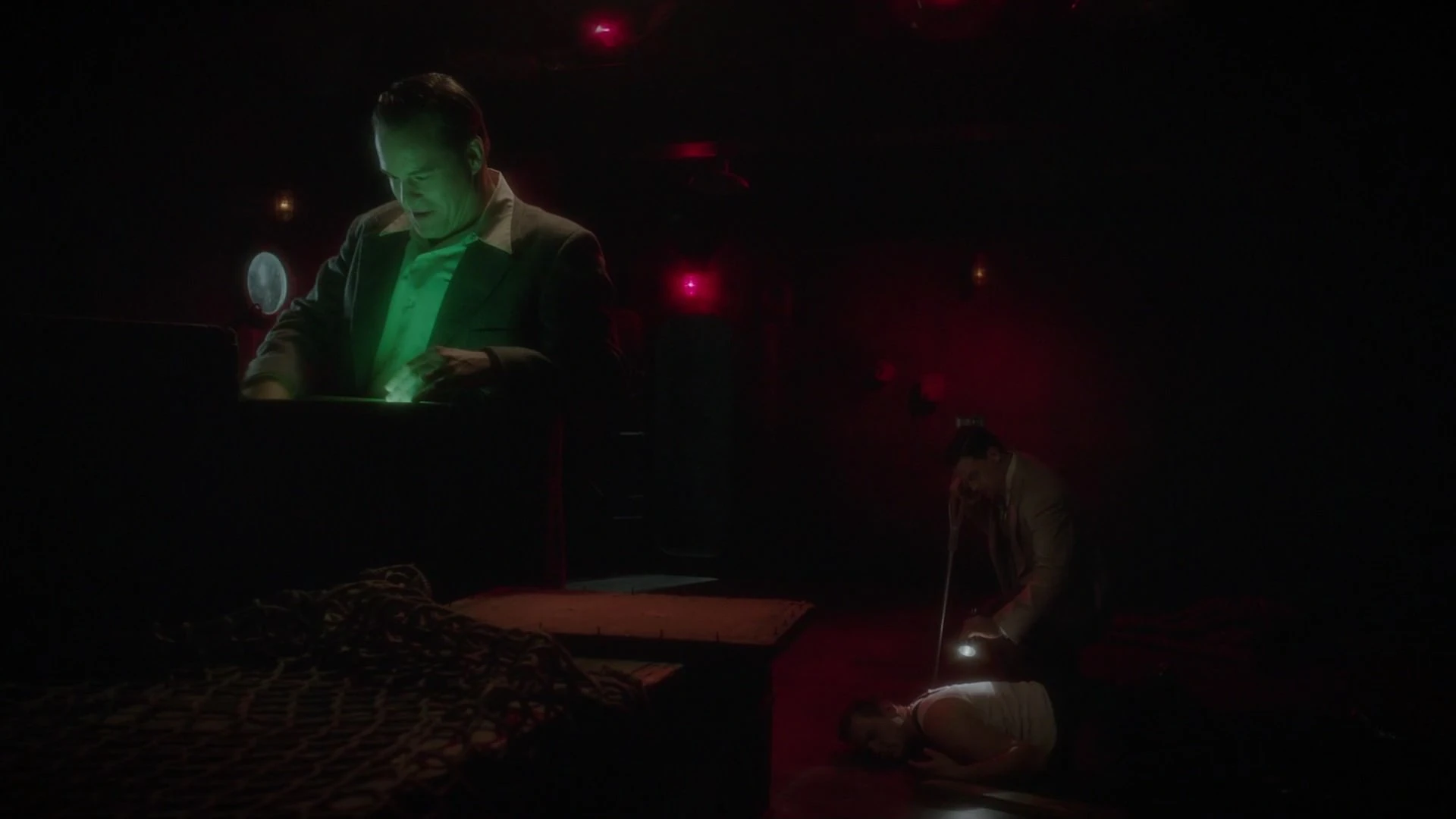 Following a lead, Krzeminski and Roger Dooley investigated Sasha Demidov's room at the Hotel Cosmopolitan. As they followed the Building Manager, Krzeminski was greeted by Emily, a prostitute he knew. Dooley ordered Krzeminski to search the room, where he found various fake passports. Meanwhile, Dooley discovered the Remote Typewriter Demidov used to communicate with his employers.