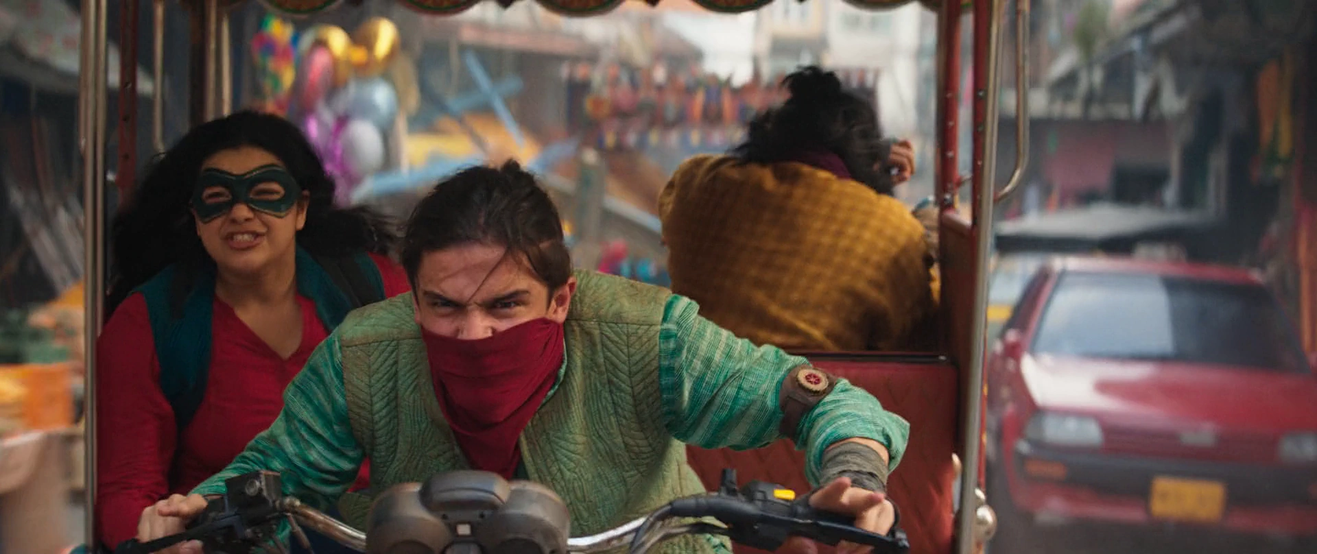 The next day, Kareem and Waleed began training Kamala to use her powers effectively when the Clandestines dropped in from the ceiling. Kareem led the two out of the building and into a rickshaw, which they attempted to escape in. However, the small vehicle was too slow to outrun the truck that Najma had taken. Kamala Khan used her powers to overturn the truck, and Waleed detached the bike from the rickshaw so the two could escape.