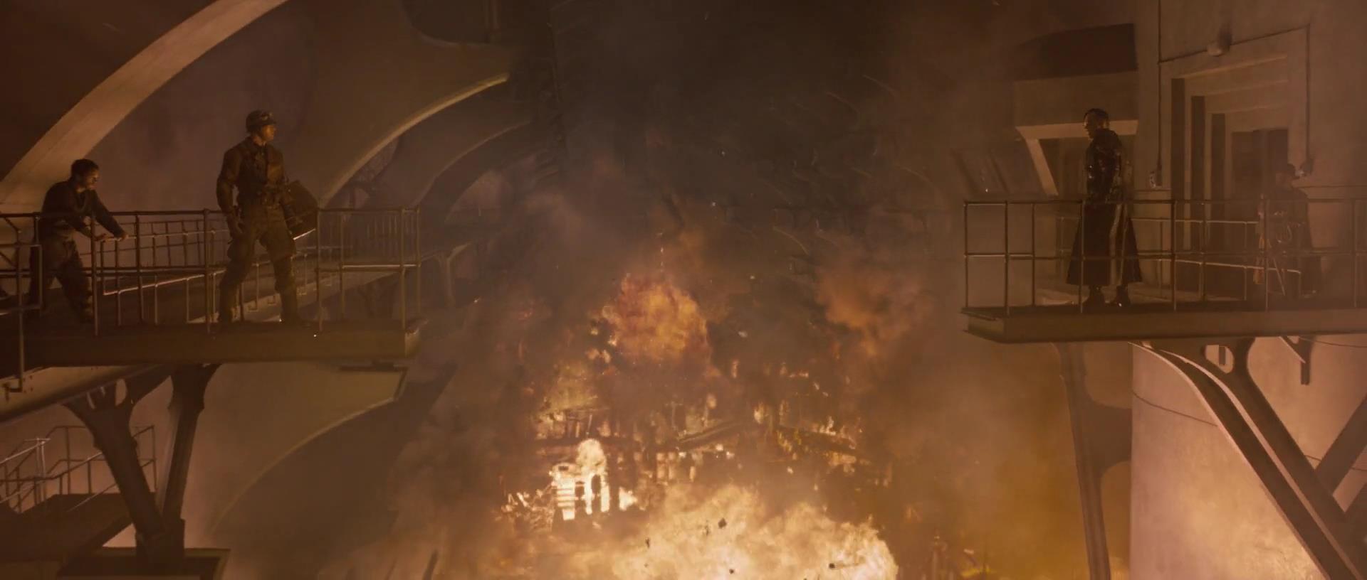 With only minutes to spare, Zola ran to his lab to collect his research as Schmidt collected the Tesseract. Without touching the immensely powerful item, Schmidt placed it into a briefcase and regrouped with Zola. While they made their way to the exit, the self-destruct on their base was activated and much of their powerful machinery inside the base had begun to explode one by one, causing the floor of the base to erupt in unstoppable flames, killing anyone who was left nearby.