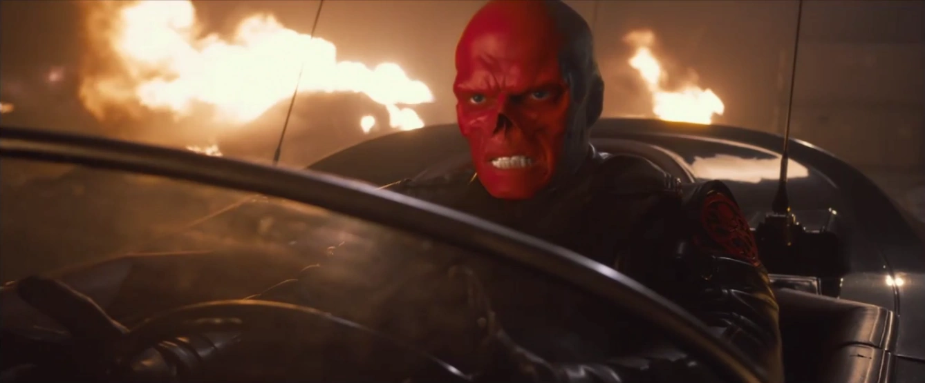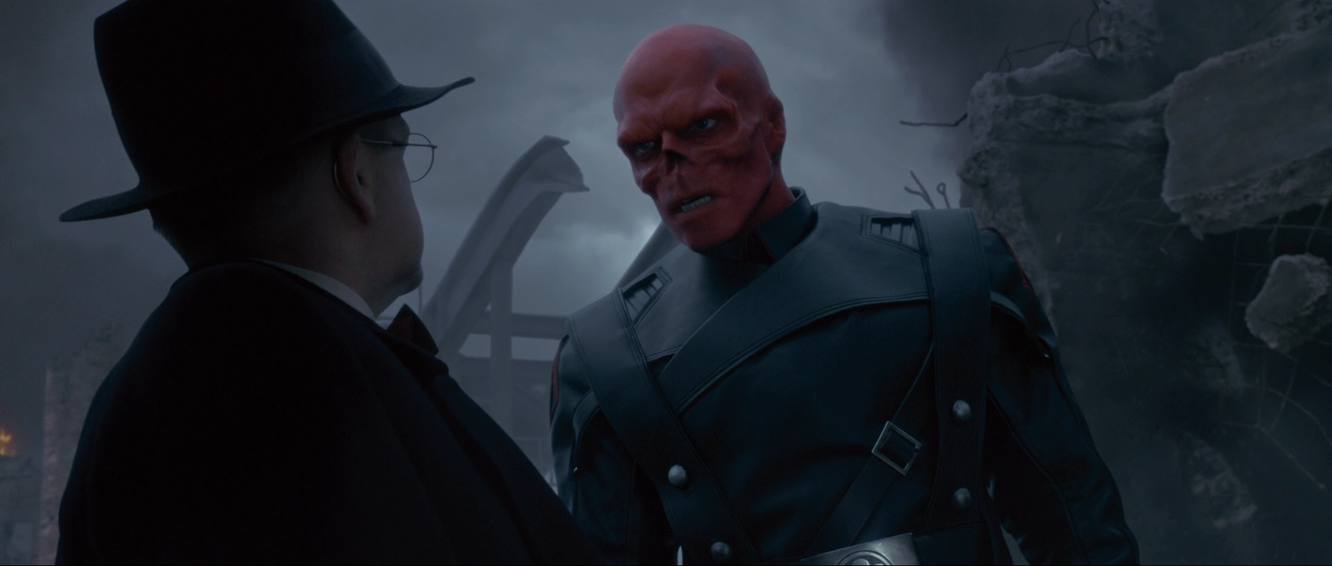 While Schmidt and Zola were about to leave while the facility burned around them, they were then confronted by Captain America. Upon seeing him, Schmidt began to mock Captain America, noting that he had seen and enjoyed the many propaganda films he had starred in. Schmidt had then noted his surprise that Abraham Erskine managed to recreate his experiment, although he made it clear he did not view Captain America's strength as an improvement upon his own.