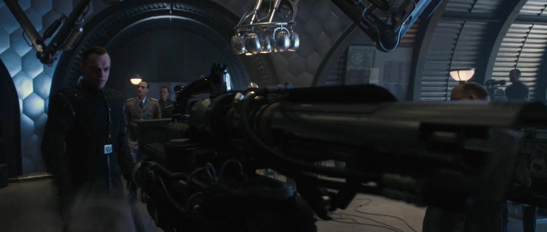 HYDRA Cannon: Having become annoyed at the insults leveled at him by Adolf Hitler's officers, Schmidt activated a Cannon powered by the Tesseract and killed Roeder along with Schneider and Hutter.