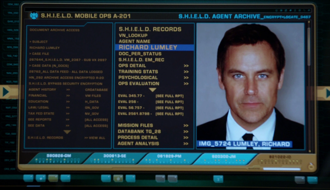 Richard Lumley is a former S.H.I.E.L.D. agent who was on the five person team that found and saved the infant Skye from her village's destruction during the Massacre in Hunan. Over two decades later, Lumley was tracked down in Mexico City by Phil Coulson and Melinda May, and used as a consultant for information about the massacre and Skye's enigmatic past.