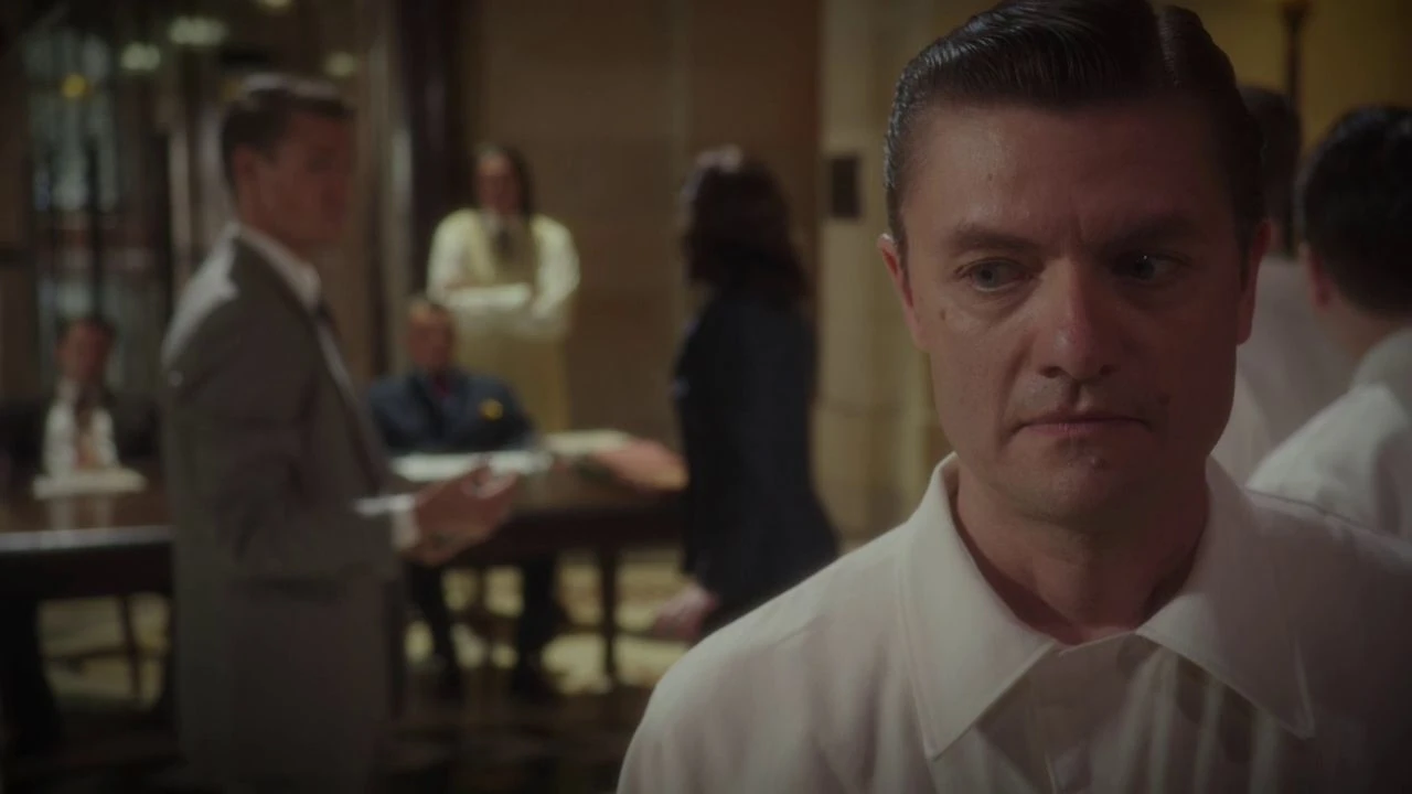 Jones doubted that any of his employees had been involved, but given that he had some spies hidden within the ranks of Stark Industries, the contrary case was probable too. Carter asked what would be her task, and Dooley explained she would scan the ladies, despite Thompson's volunteering as Dooley considered it would not be appropriate.