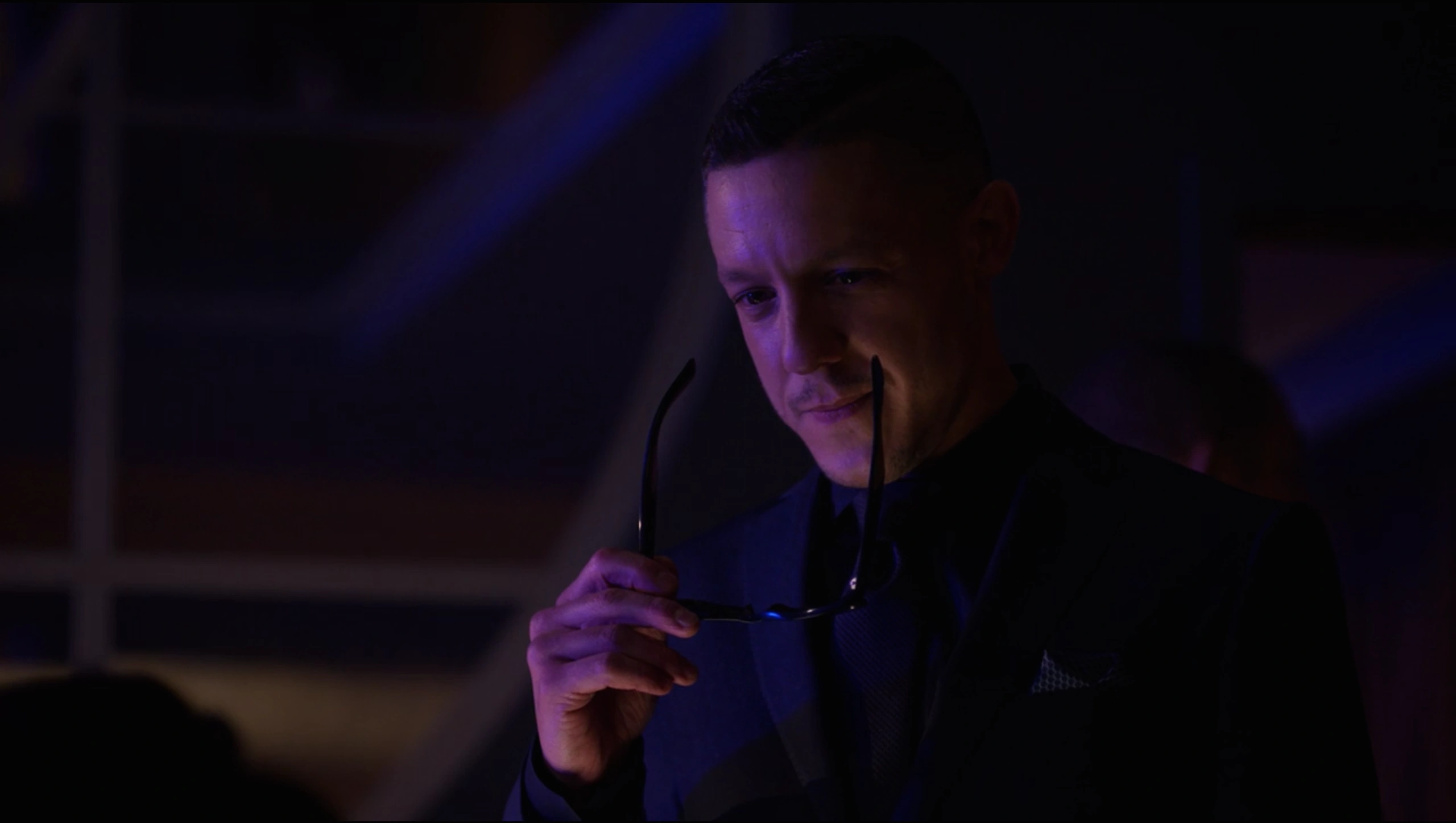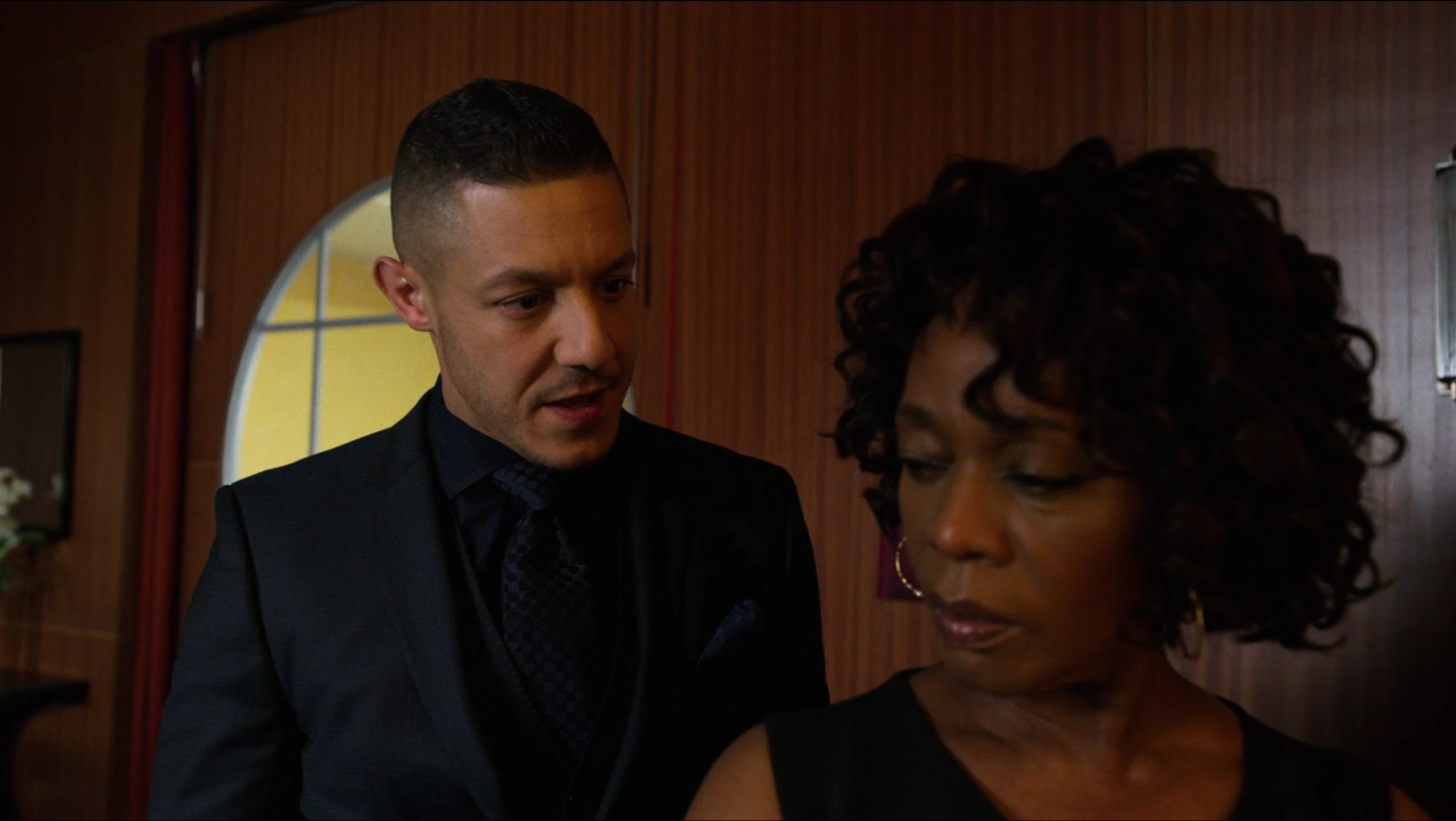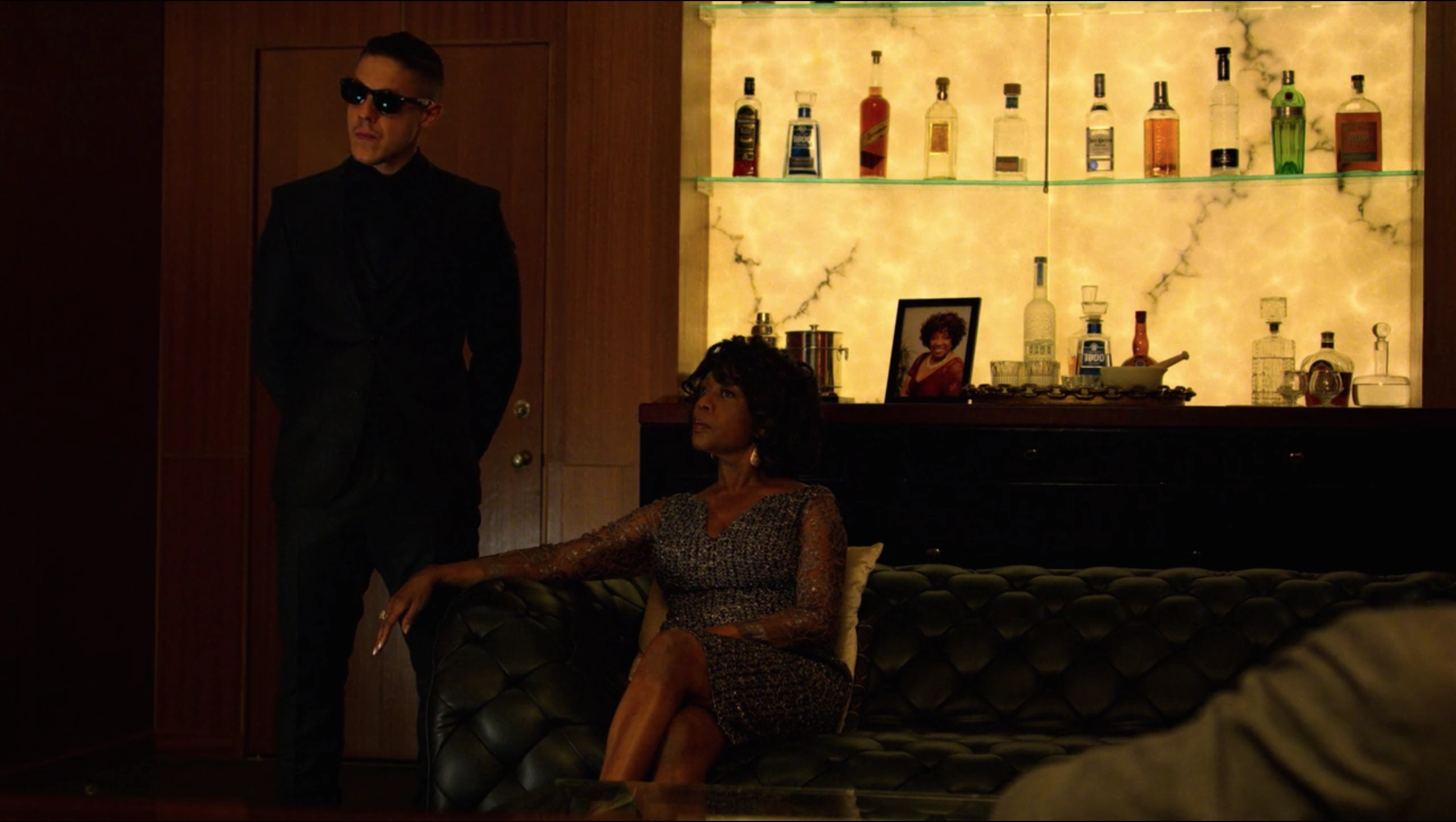 Having agreed to the New York City Police Department's plan for him to wear a wire, Shades then returned to Harlem's Paradise during a party they were hosting. Shades walked through the crowds of party goings and had gone to meet with Mariah Dillard, who was sat in her usual spot and enjoying the music. Having established that he was unarmed, Dillard allowed Shades to sit with her as she demanded that he removed his glasses, claiming that she always liked his eyes before questioning if he had been crying, although Shades had instead claimed it was his allergies as he was allergic to bullshit.