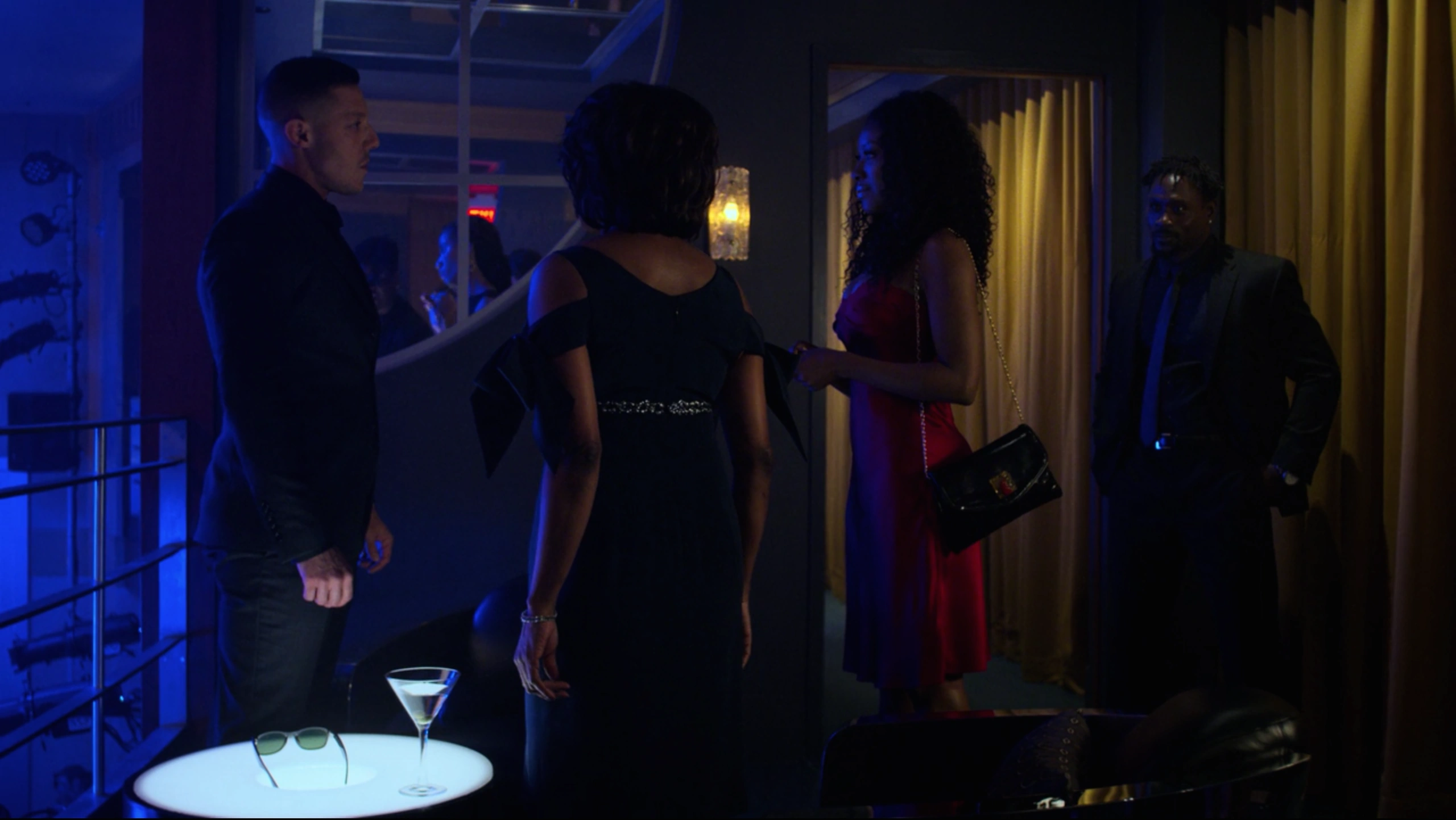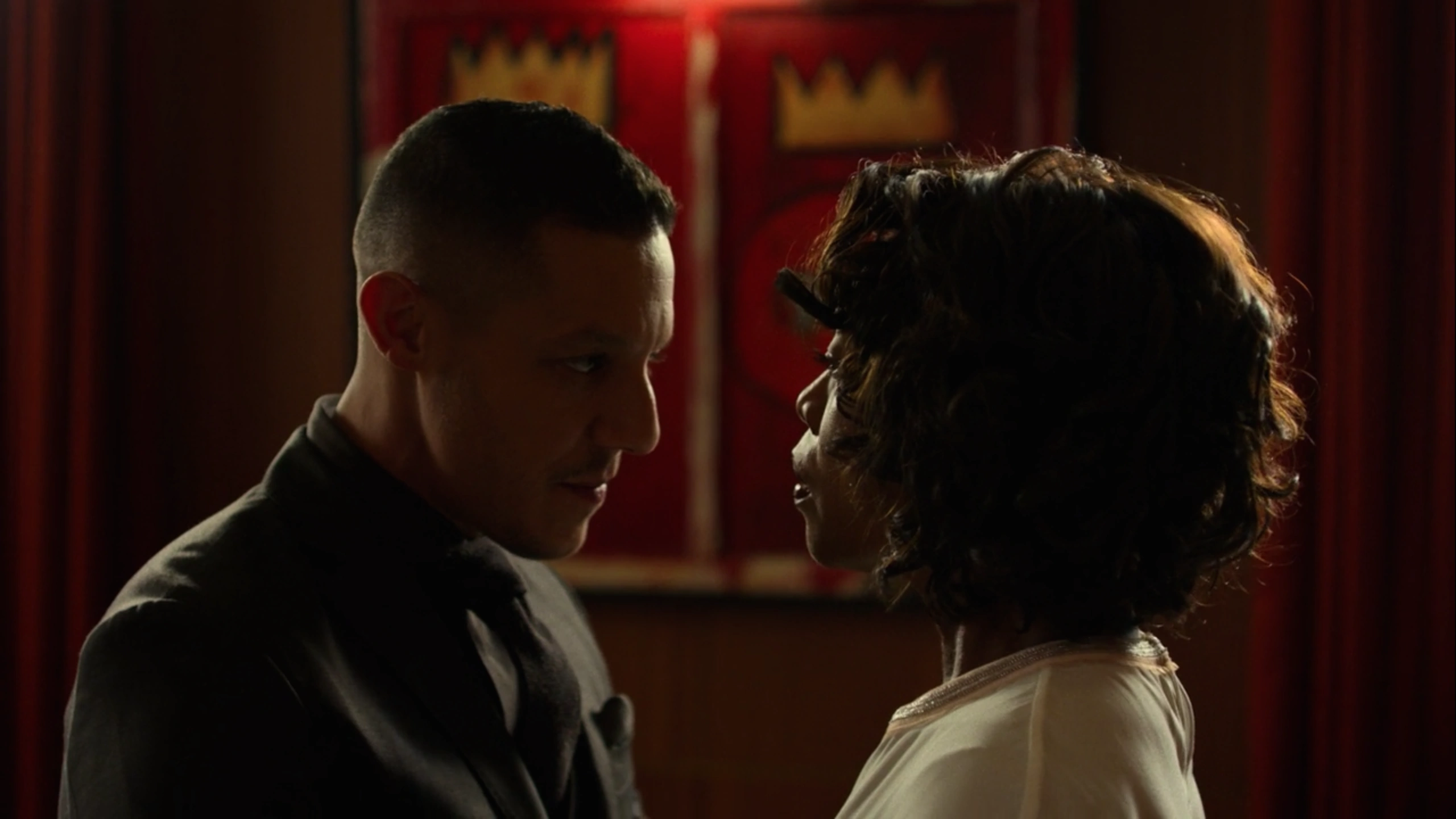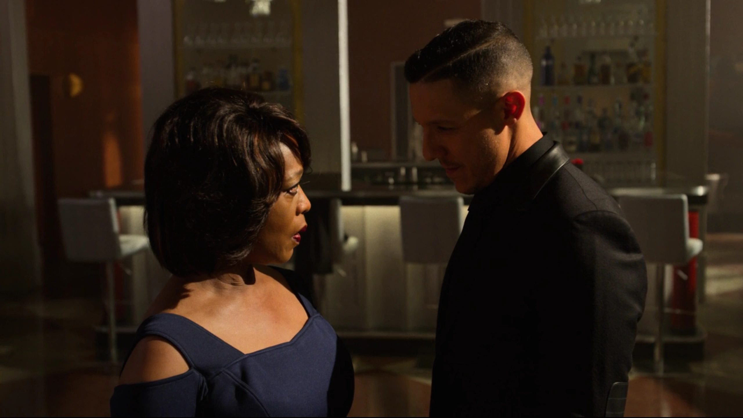 Having agreed to the New York City Police Department's plan for him to wear a wire, Shades then returned to Harlem's Paradise during a party they were hosting. Shades walked through the crowds of party goings and had gone to meet with Mariah Dillard, who was sat in her usual spot and enjoying the music. Having established that he was unarmed, Dillard allowed Shades to sit with her as she demanded that he removed his glasses, claiming that she always liked his eyes before questioning if he had been crying, although Shades had instead claimed it was his allergies as he was allergic to bullshit.