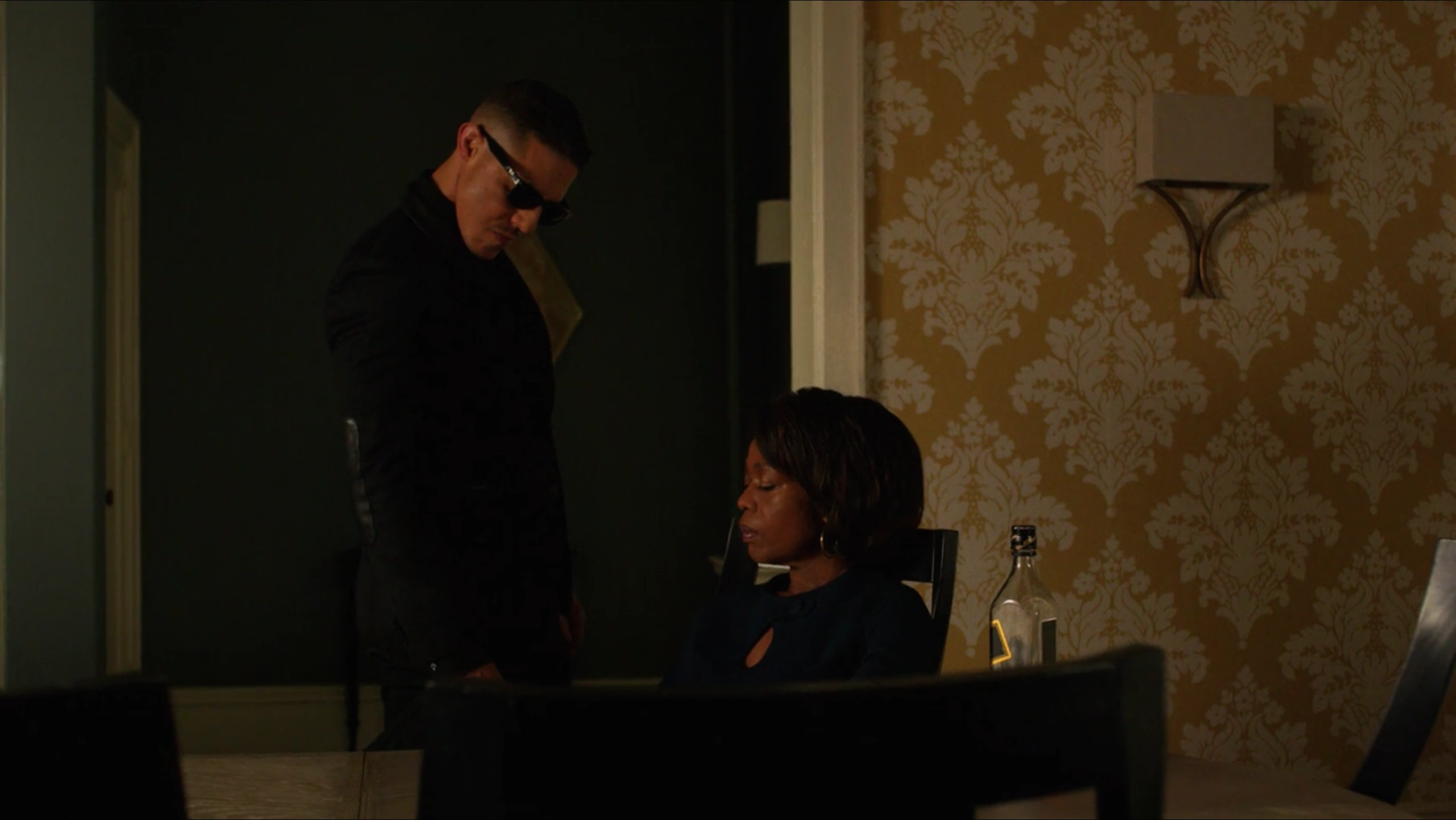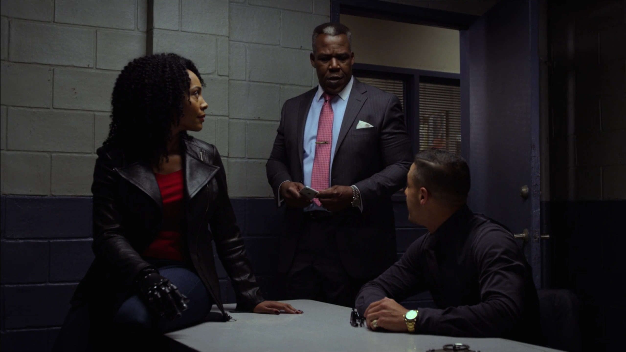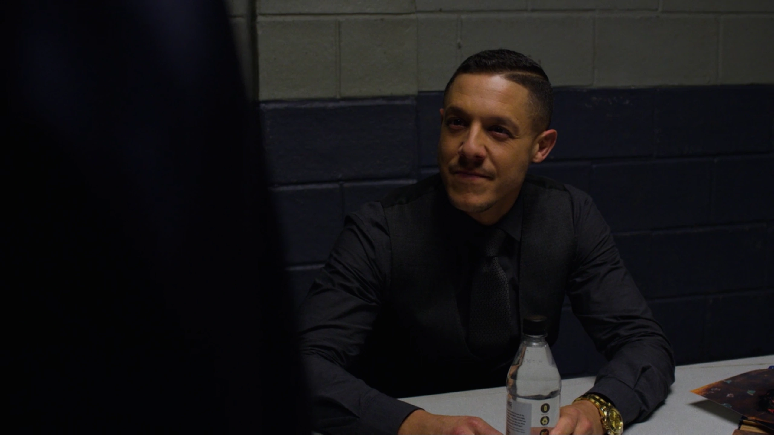 Waiting for the interrogation to begin, Shades was put inside one of the interrogation rooms where he took his nap on the table, knowing that he would be kept waiting and wanting to maintain his strength and energy for when the questioning would begin. While Shades was sleeping, Deputy Chief Priscilla Ridley spoke with Detective Knight about what Shades could provide them into their investigation, with Knight arguing that the risk of Shades be able to walk free following his many crimes would be worthwhile if he helped them all to finally bring down Dillard's criminal empire and put her behind bars.