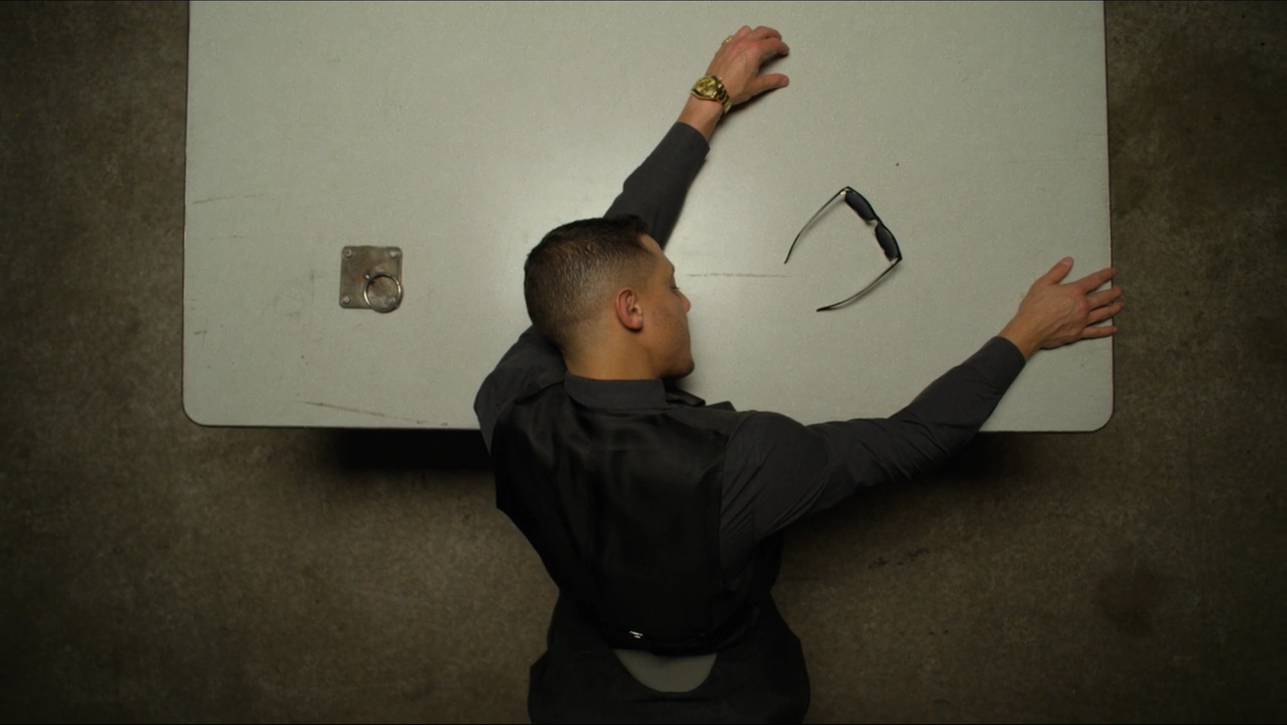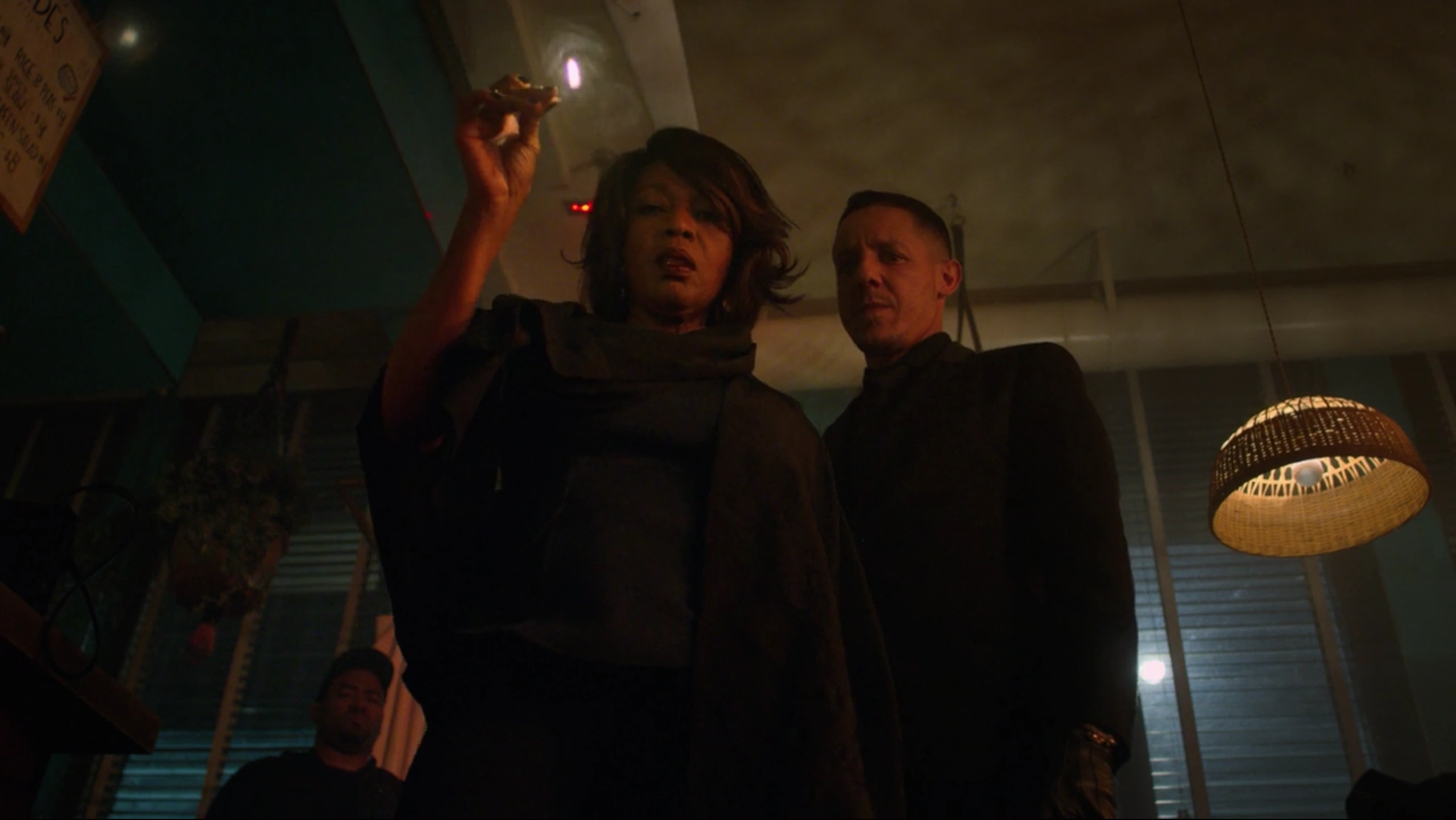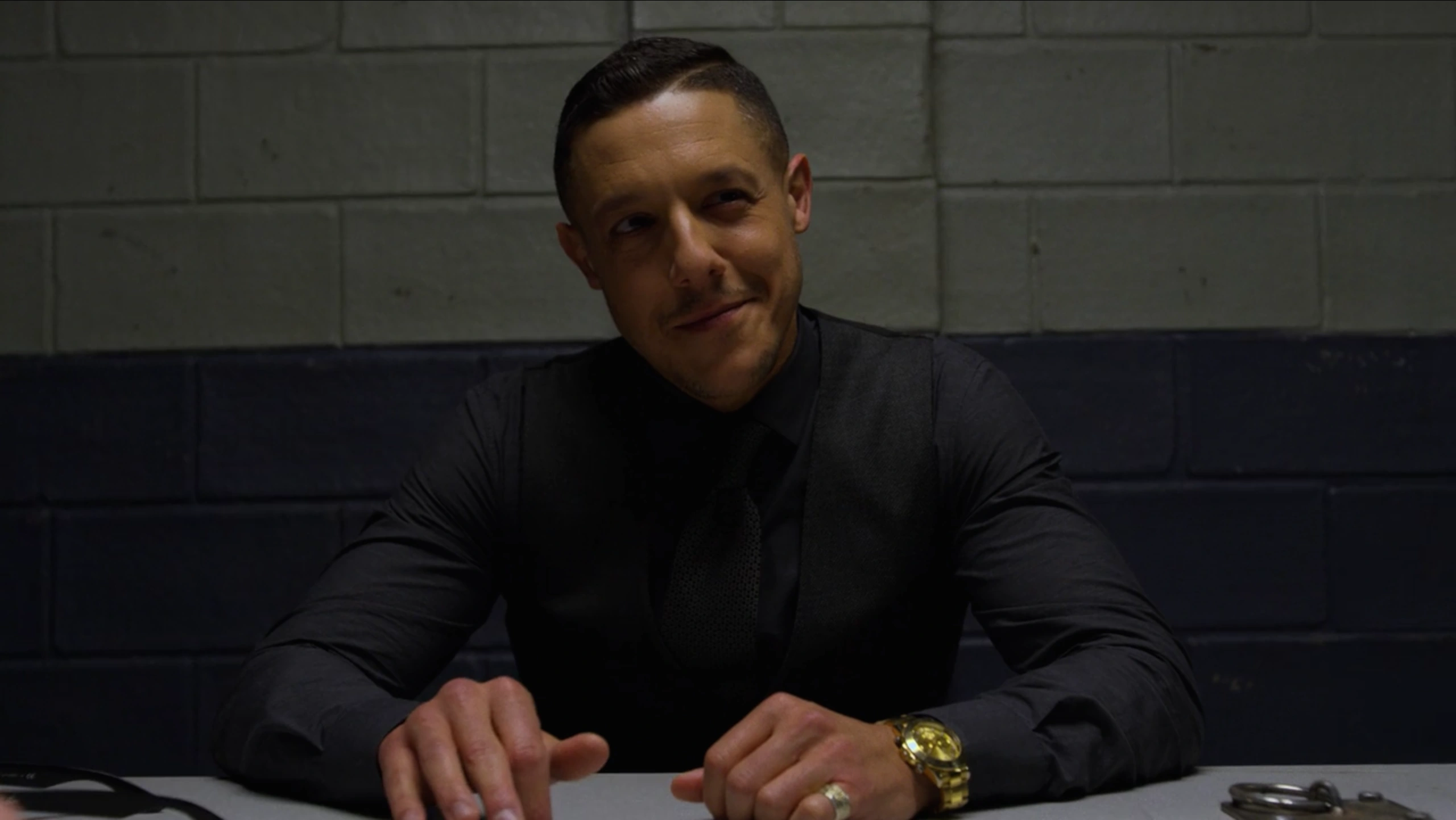 Waiting for the interrogation to begin, Shades was put inside one of the interrogation rooms where he took his nap on the table, knowing that he would be kept waiting and wanting to maintain his strength and energy for when the questioning would begin. While Shades was sleeping, Deputy Chief Priscilla Ridley spoke with Detective Knight about what Shades could provide them into their investigation, with Knight arguing that the risk of Shades be able to walk free following his many crimes would be worthwhile if he helped them all to finally bring down Dillard's criminal empire and put her behind bars.
