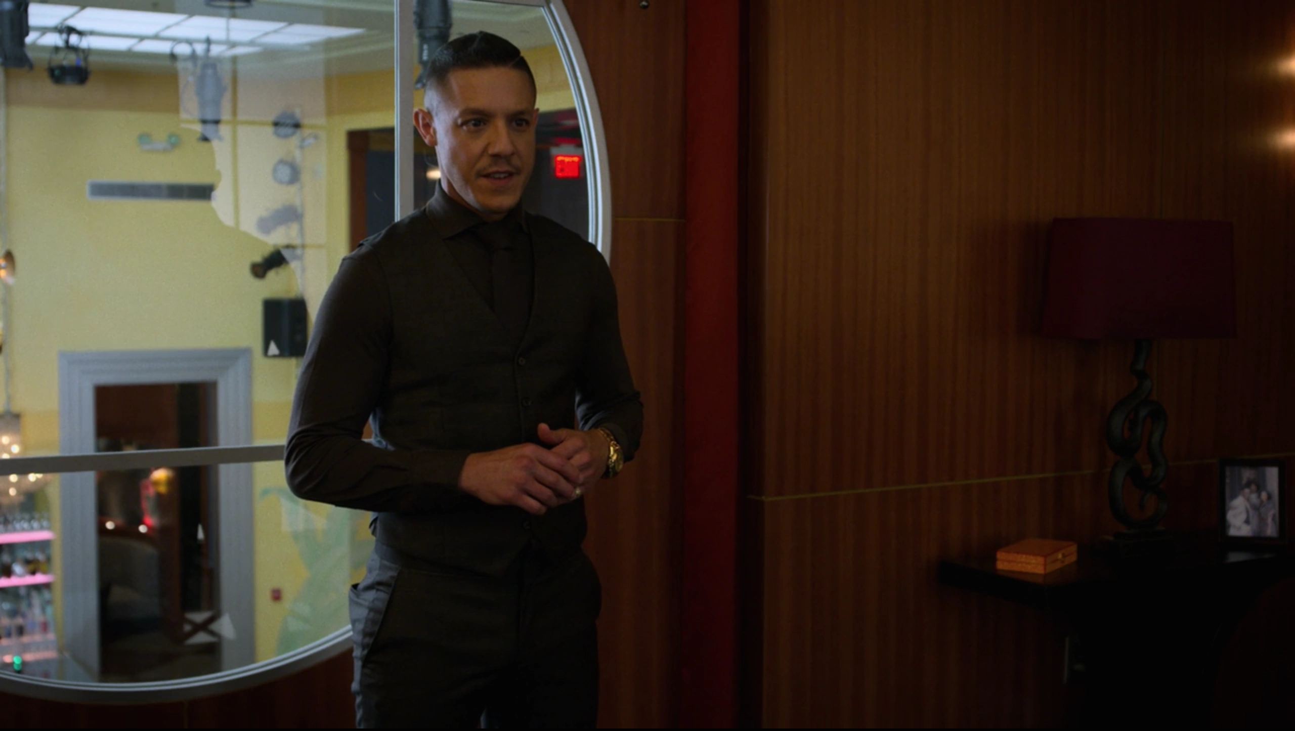 With the threat of Bushmaster still strong, Shades had joined Mariah Dillard as they went for a tour around their new security basement at Harlem's Paradise. Shades watched on while Dillard and Alex Wesley then delighted at the new facility and the technology which had been provided to them by Atreus Plastics, including a hand scanner which ensured that only they could be granted access through their large steel door which was designed to protect against nuclear attacks, while Wesley focused much of his attention on deciding where they should place their artworks.
