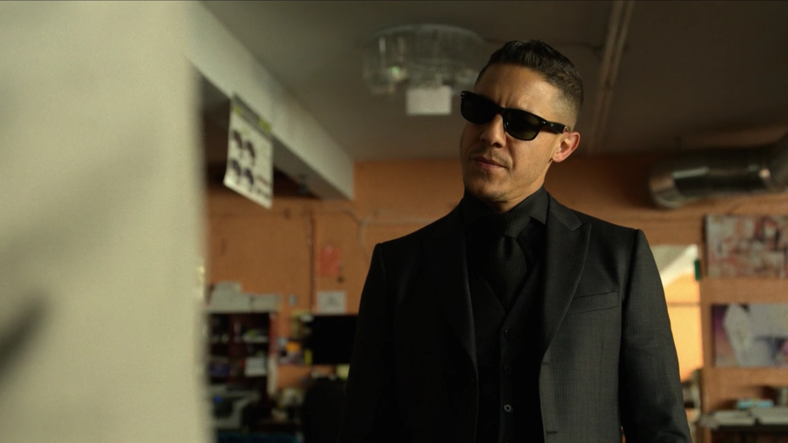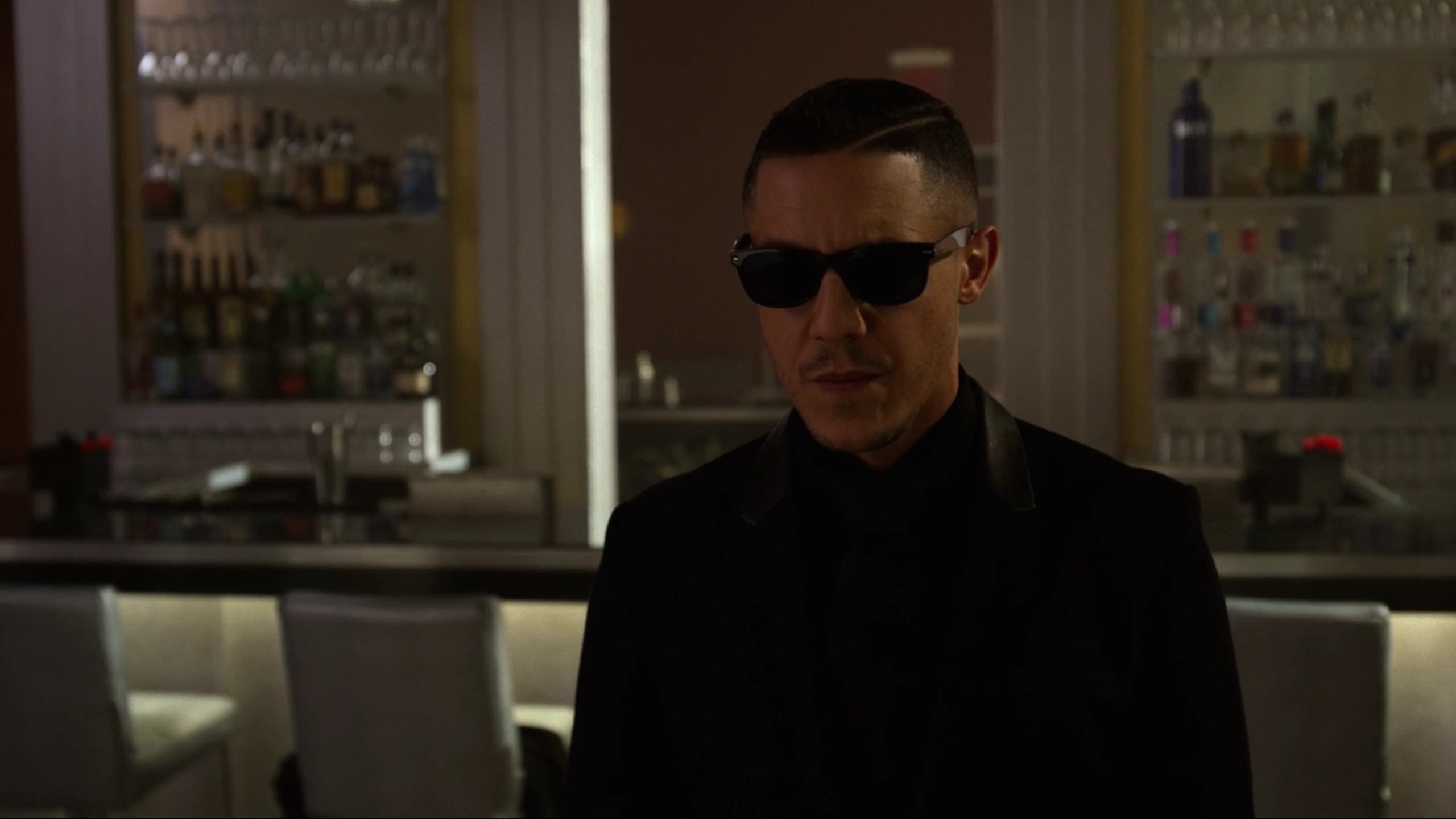 Under the orders of Diamondback, Shades then arrived at Harlem's Paradise where he greeted Cottonmouth and explained the situation in the wake of his failed sale of Diamondback's Hammer Industries' guns, while Tone insulted him. When Cottonmouth suggested this was a takeover, Shades noted that he would be powerless to stop Diamondback, promising that he was there to help. However, Shades had remained calm, as he removed his sunglasses and questioned if this had been an inside job, which Cottonmouth had denied.[2]